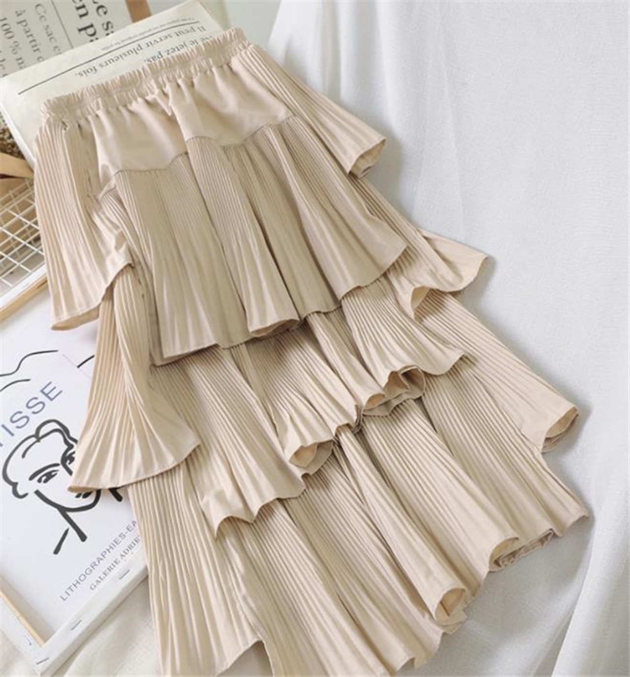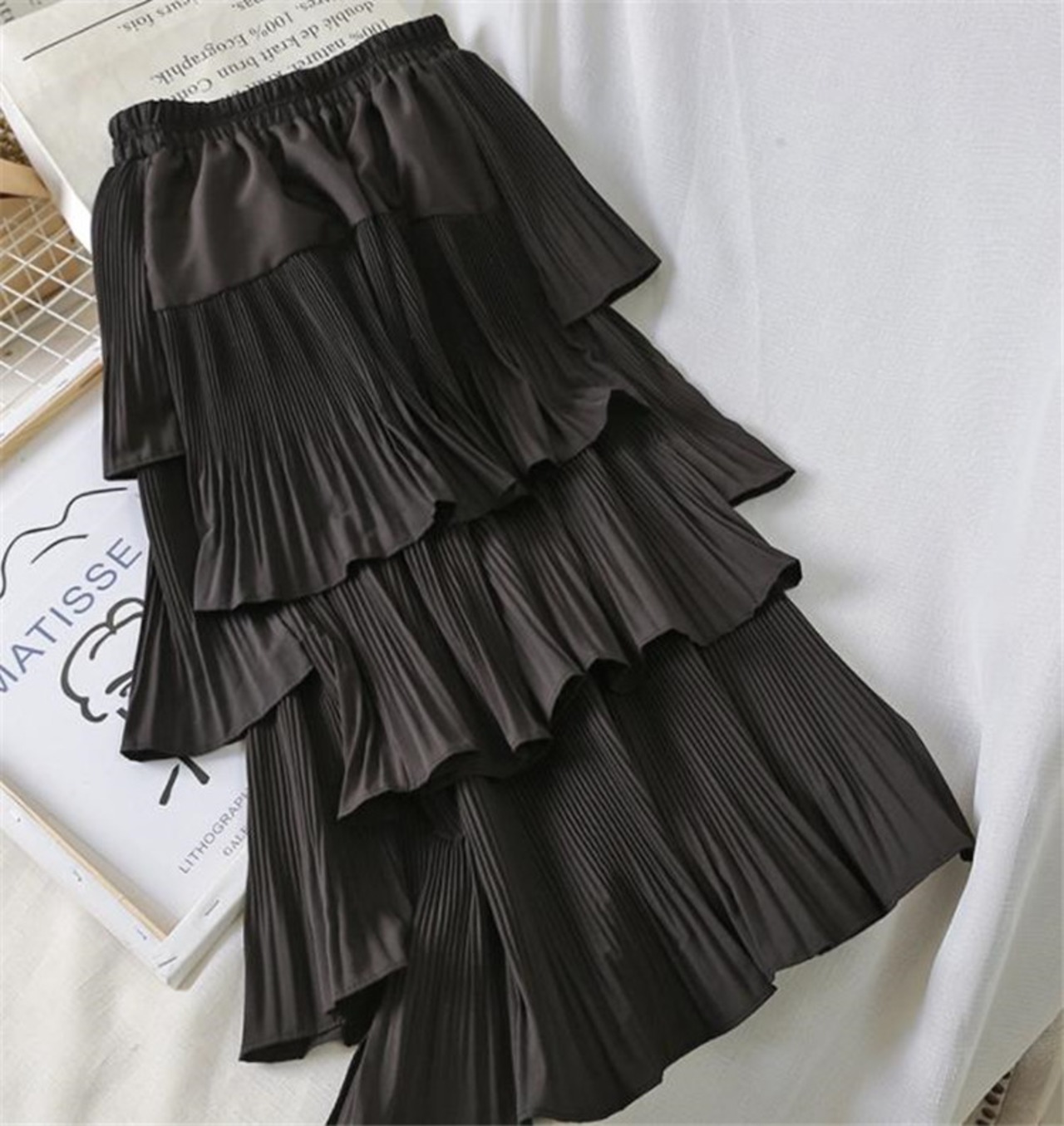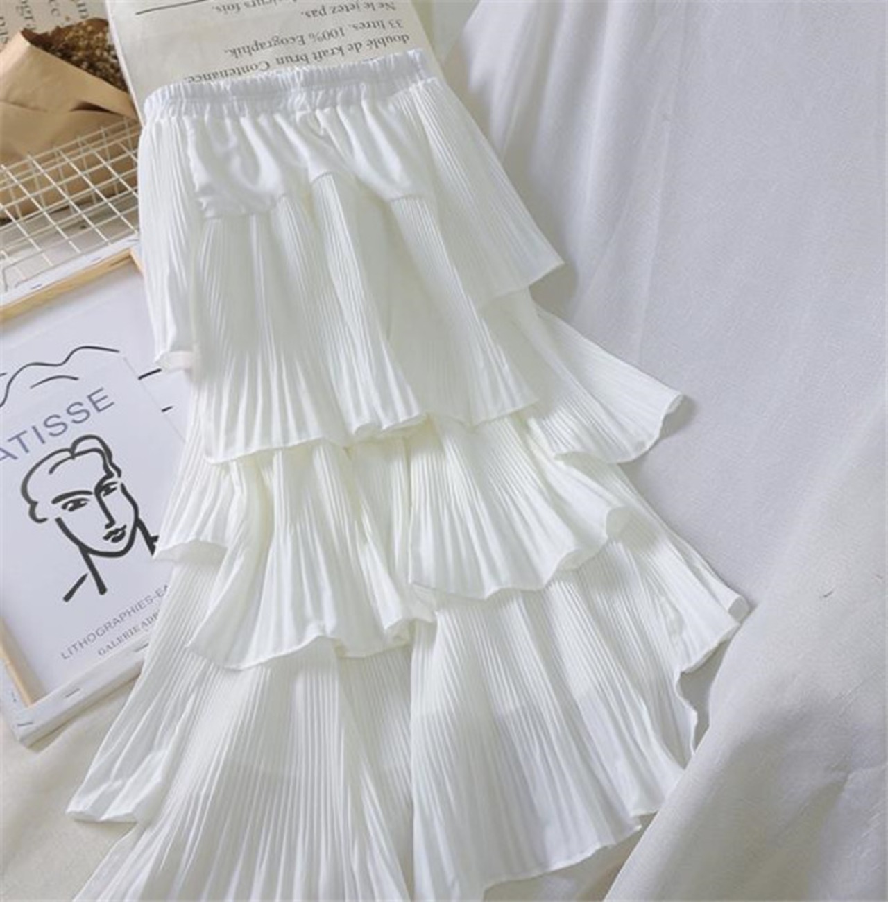 シフォン ハイウエスト スリム プリーツスカート(ベージュ ホワイト ブラック ダークグレー)
