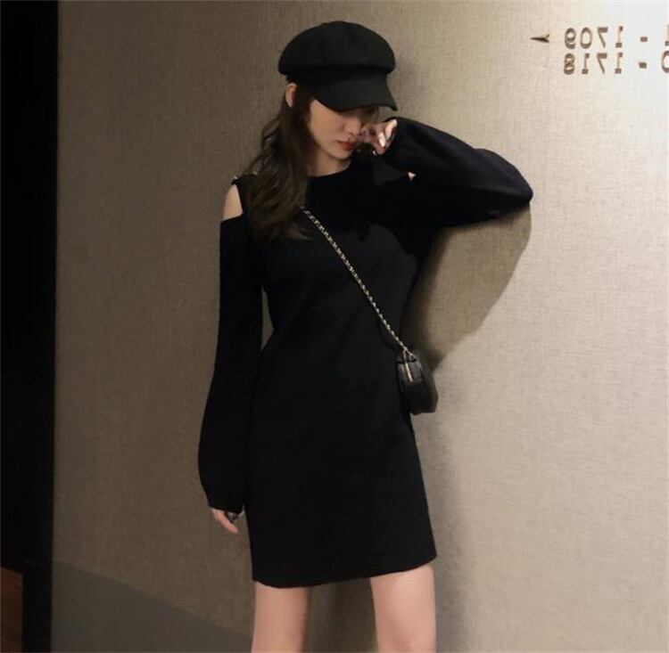 ワンピース ミニスカート オープンショルダー 柔らかな雰囲気 レディースファッション ピュアカラー(ホワイト ブラック)