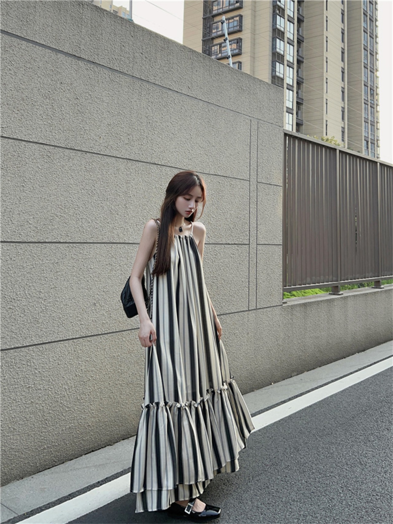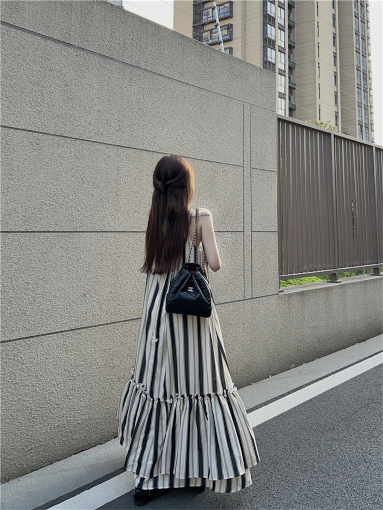 ストライプ ジャンパースカート ケーキスカート ロングスカート エプロンドレス ジャンパードレス