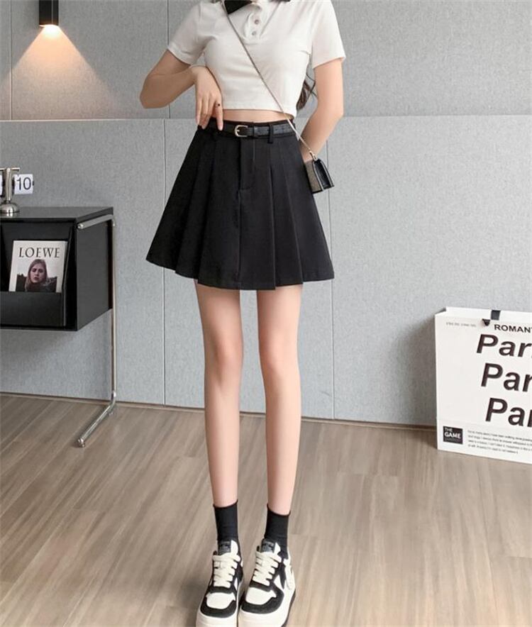 プリーツスカート ミニスカート ハイウエスト ジッパー(ブラック グレー べージュ)