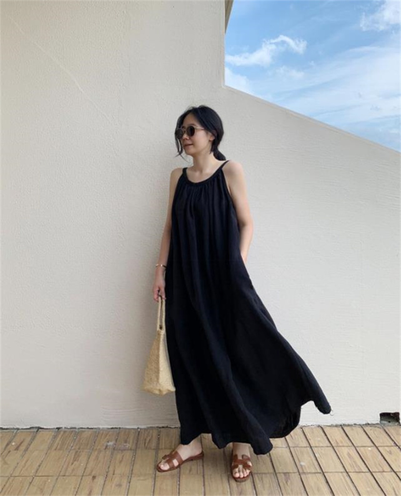 一気に大人モード ジャンパースカート スリム お出かけ ロングワンピース(ブラック グレー)