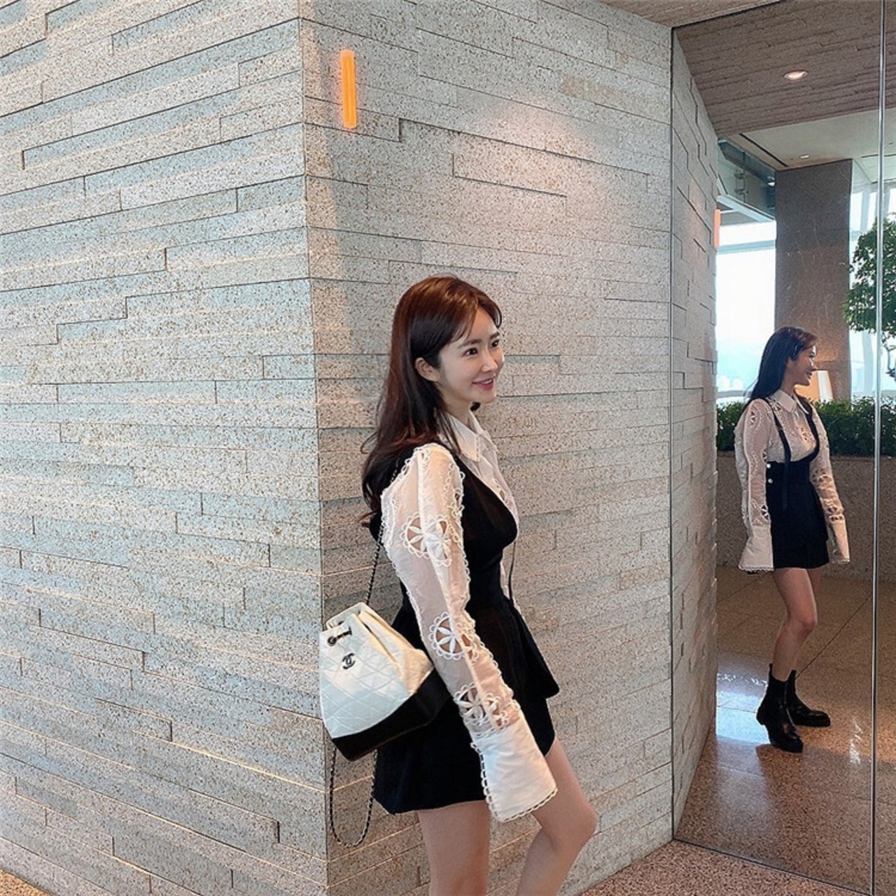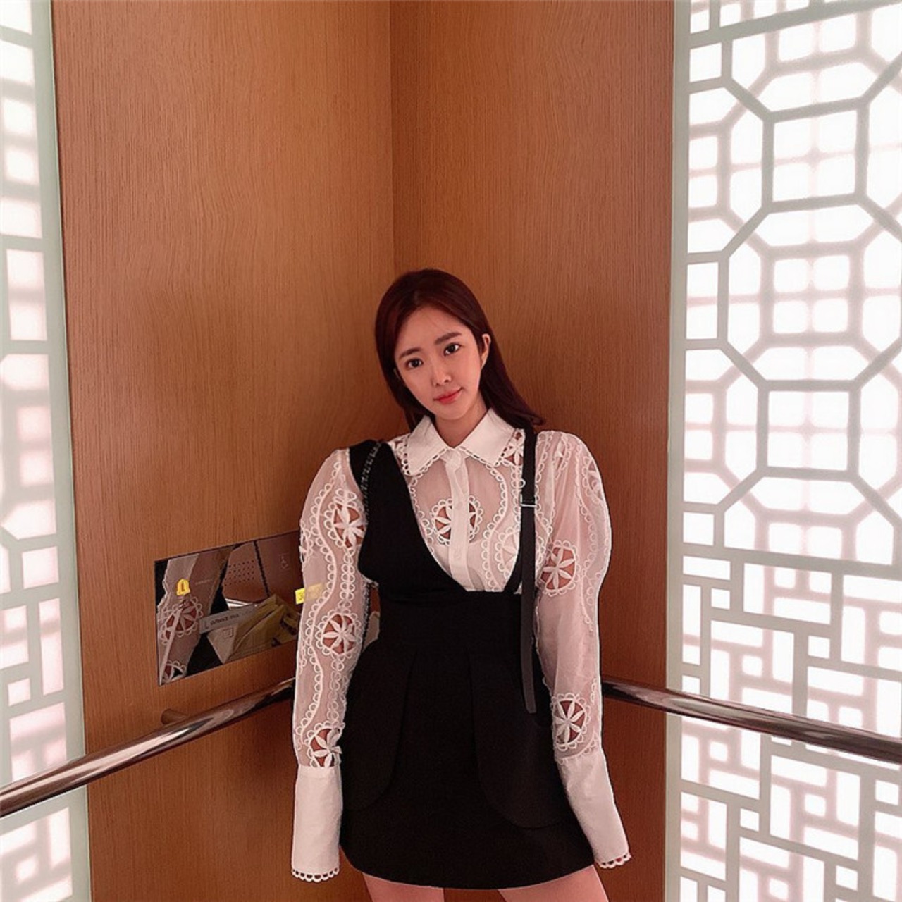 洗練されたシルエット 長袖シャツ レース レトロ メッシュ