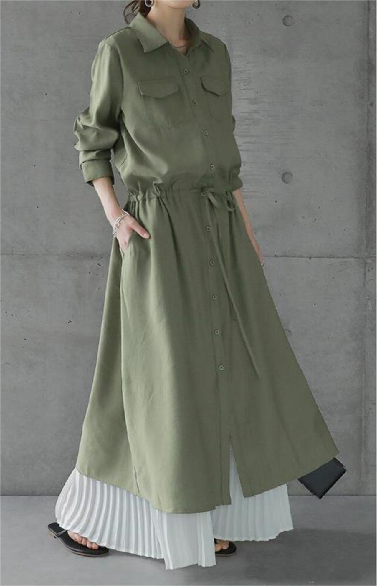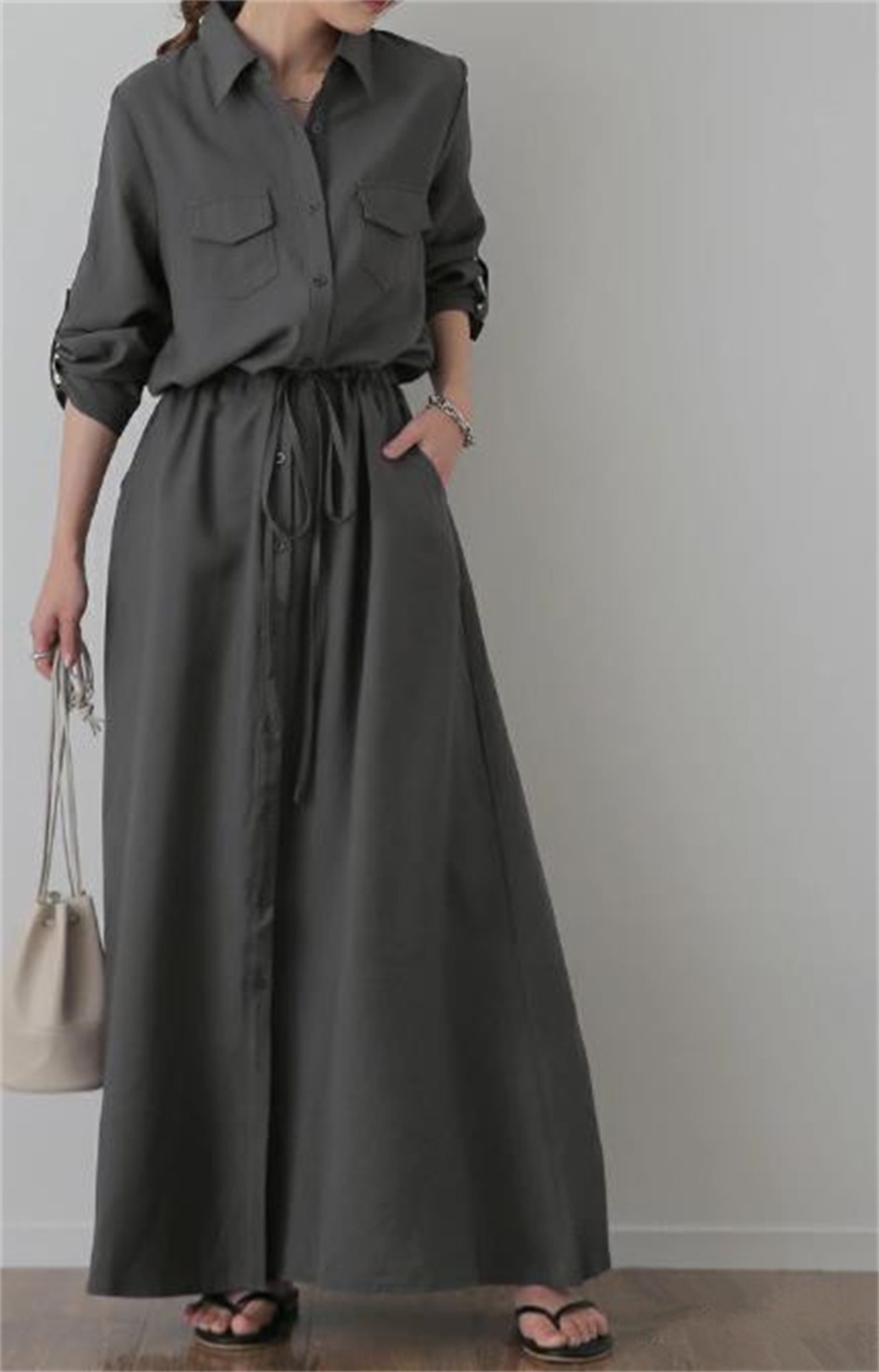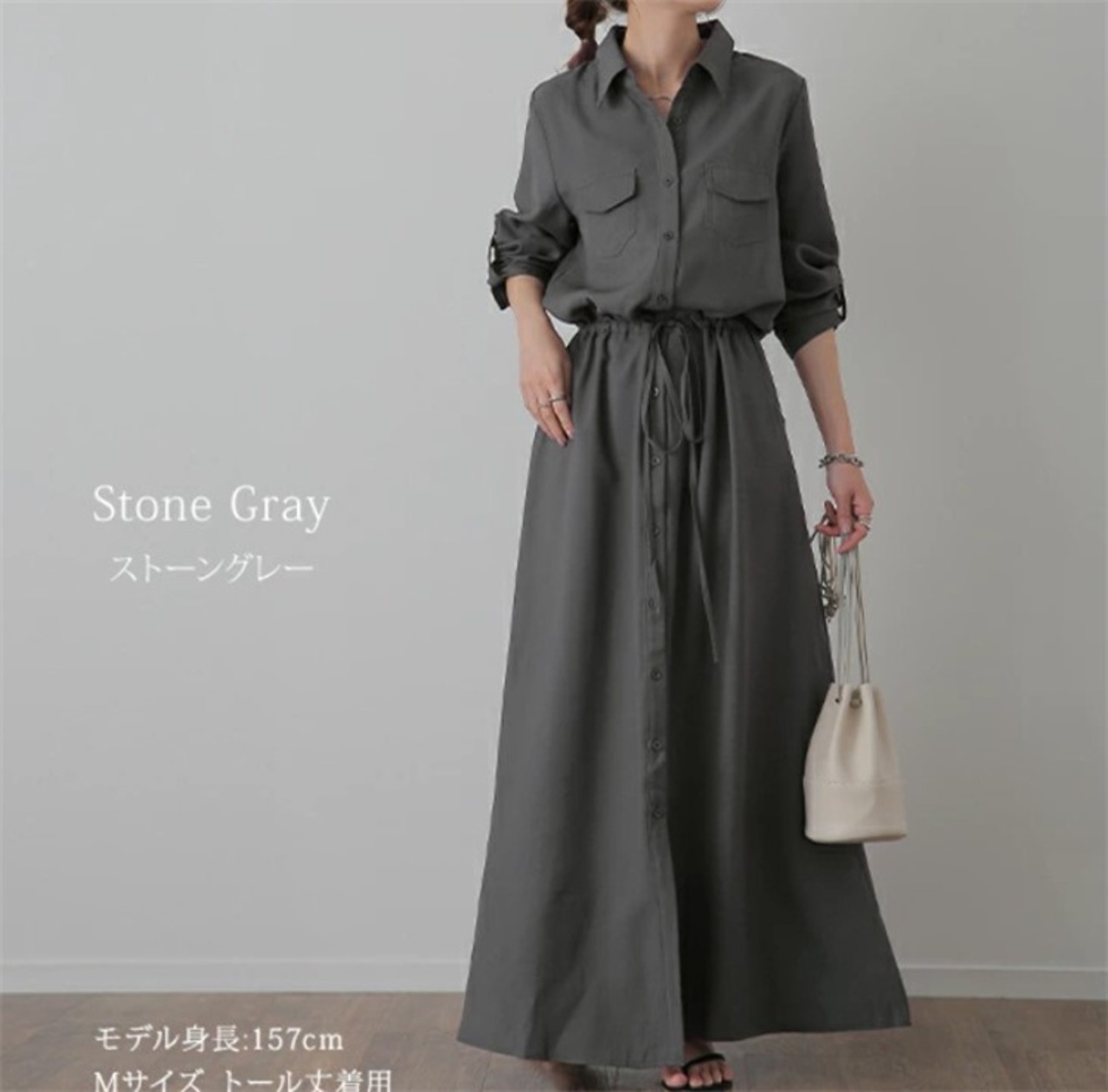 これからの時期に スタイル ワンピース シャツワンピ カジュアルワンピース ロングスカート