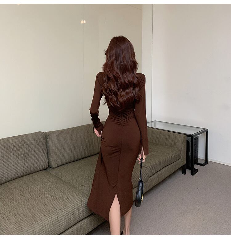 新しいスタイルを試す スリム スプリット ハイウエスト デザインセンス 長袖ワンピース