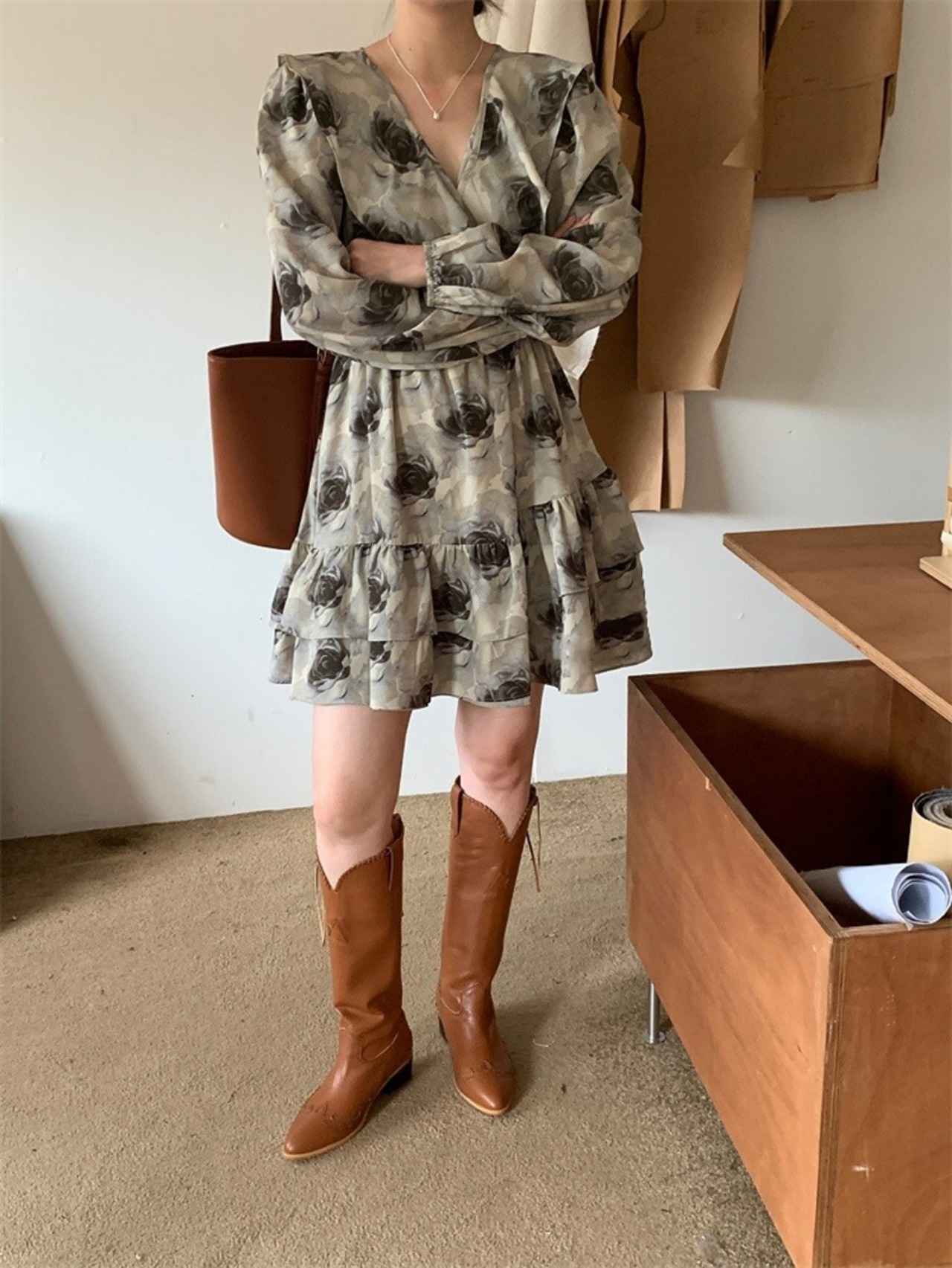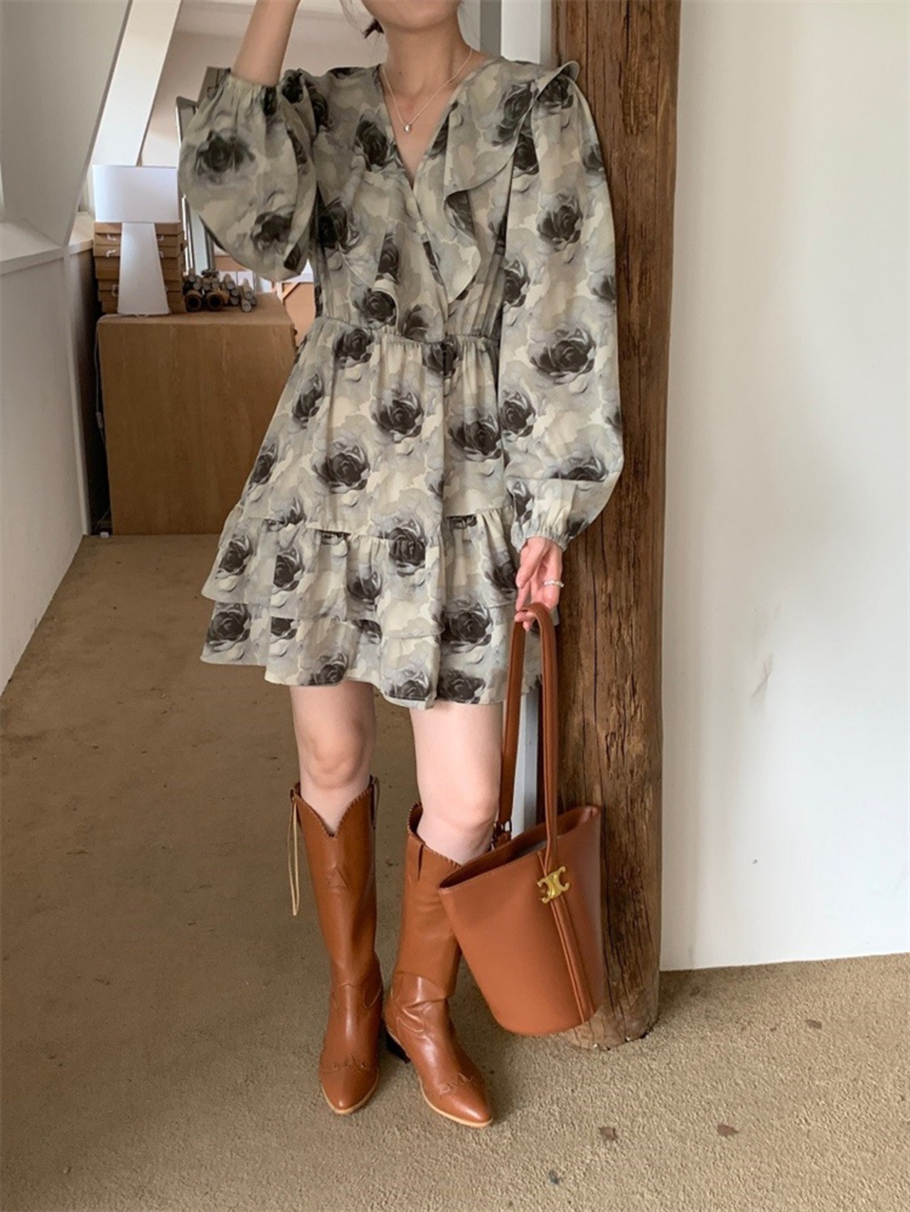 これ1つでレイヤード上手 ファッション 長袖ワンピース 花を染める 秋 フリルワンピース