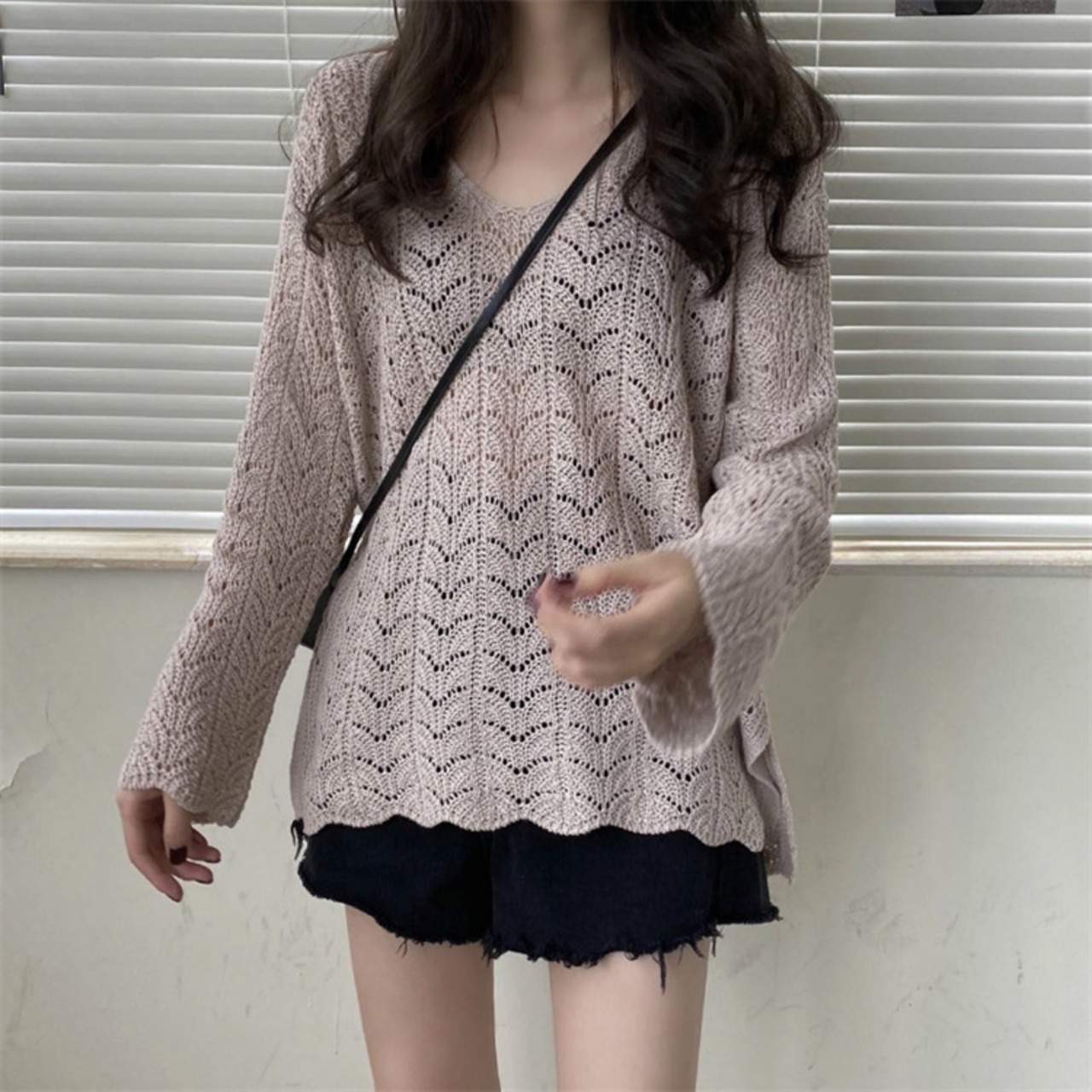 デイリーに使える レースブラウス 新品 Vネック上着 大人気 ニットトップス