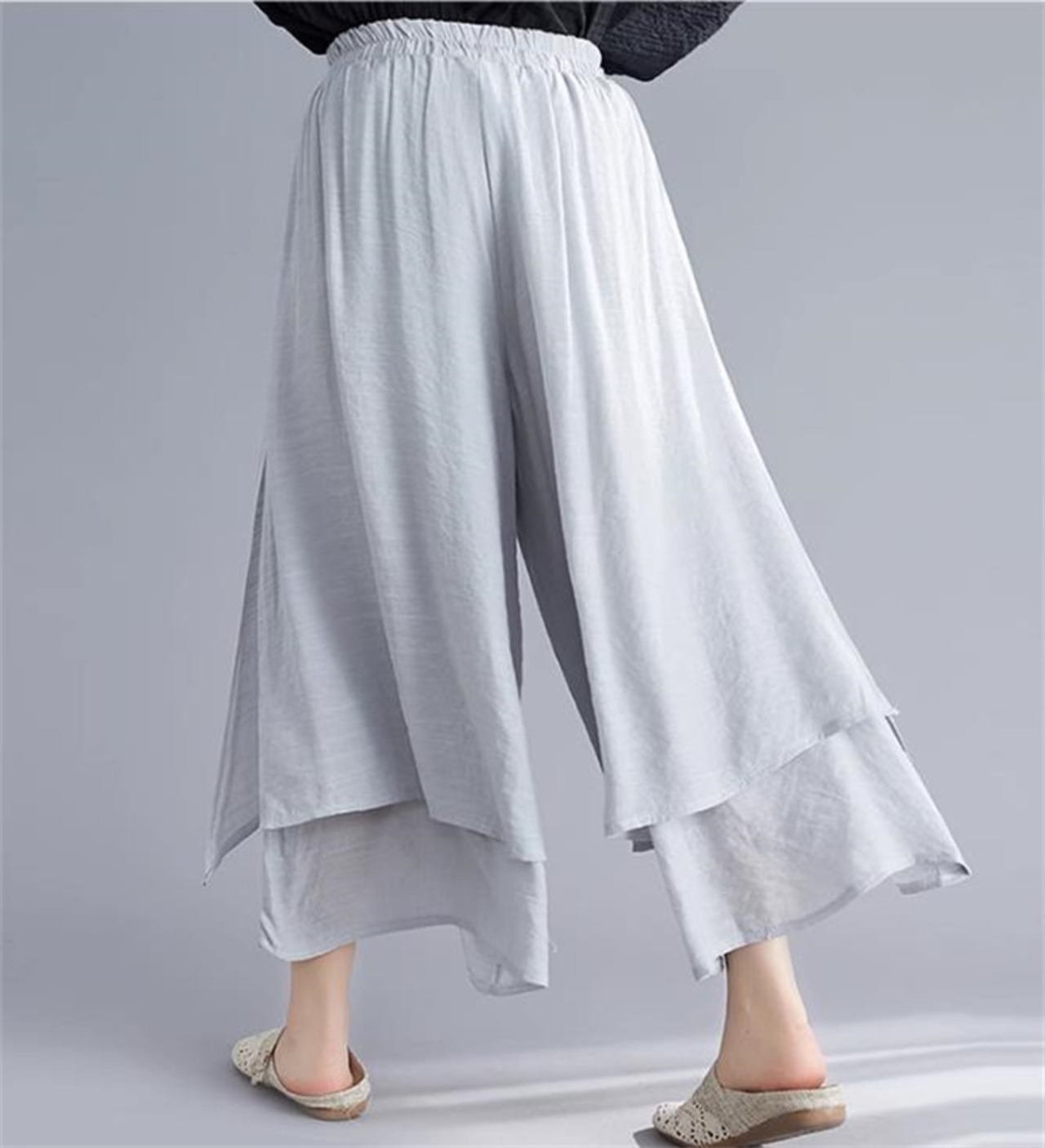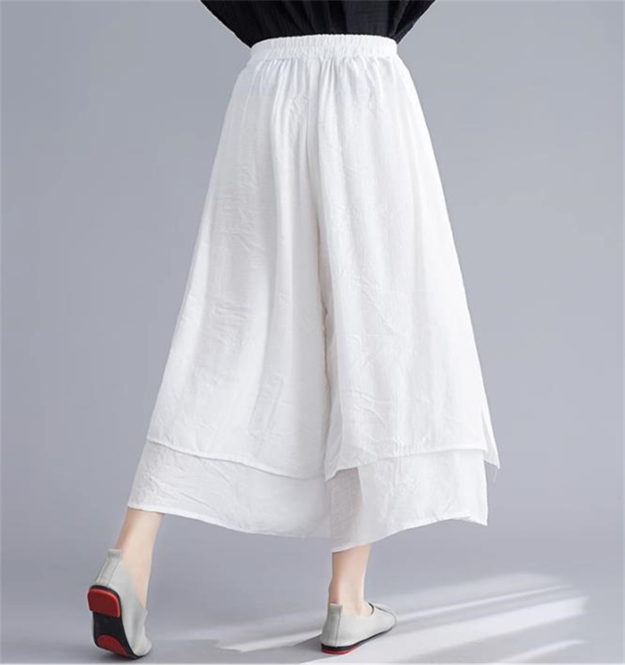 デイリーに使える 文芸 スリム 九分パンツ 快適 新品 綿麻 ワイドパンツ キュロット