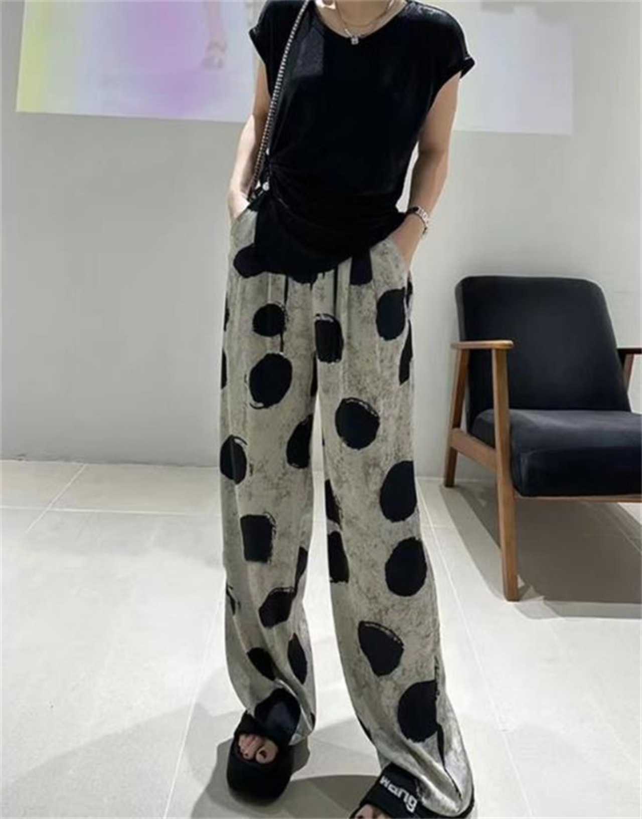 優しい着心地 早い者勝ち ドット カジュアルパンツ 捺染パンツ スリム ロングパンツ ストリート