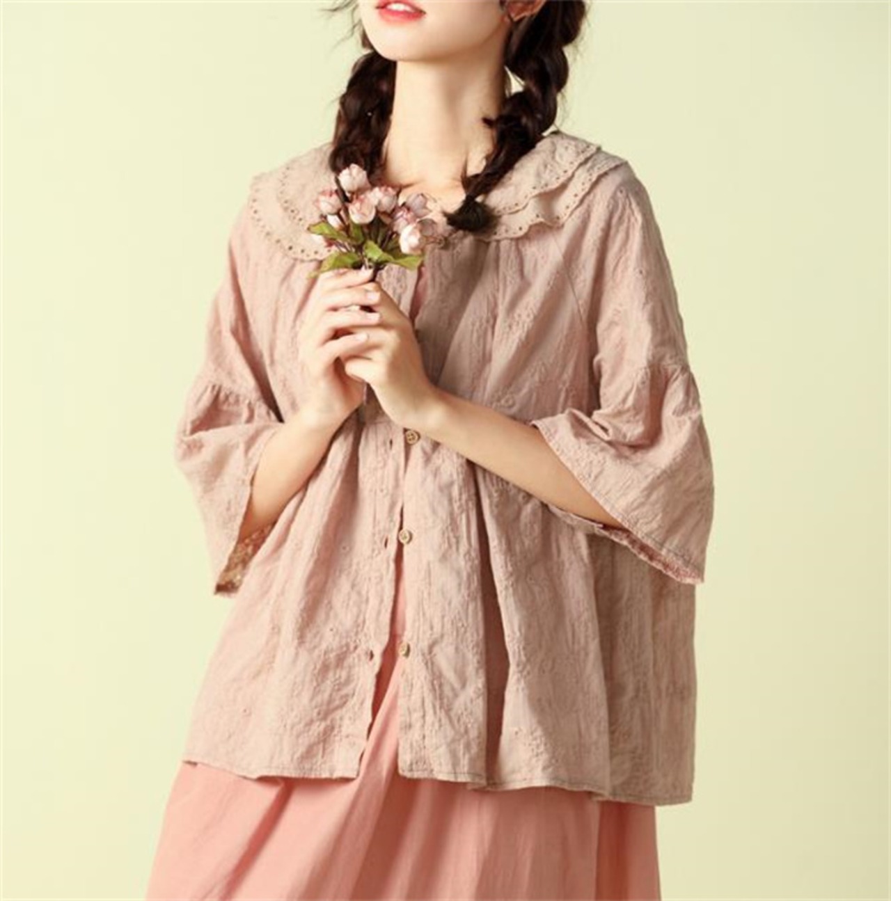 話題の注目アイテム ラッパ袖の上着 人形の襟の上着 スリム 上品映え 中袖の上着