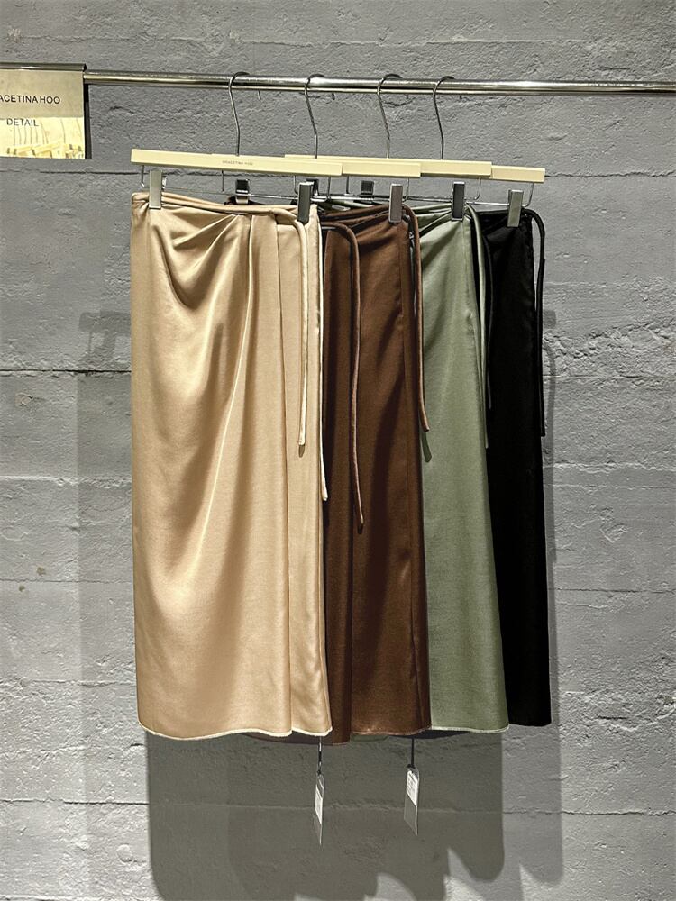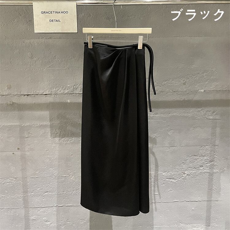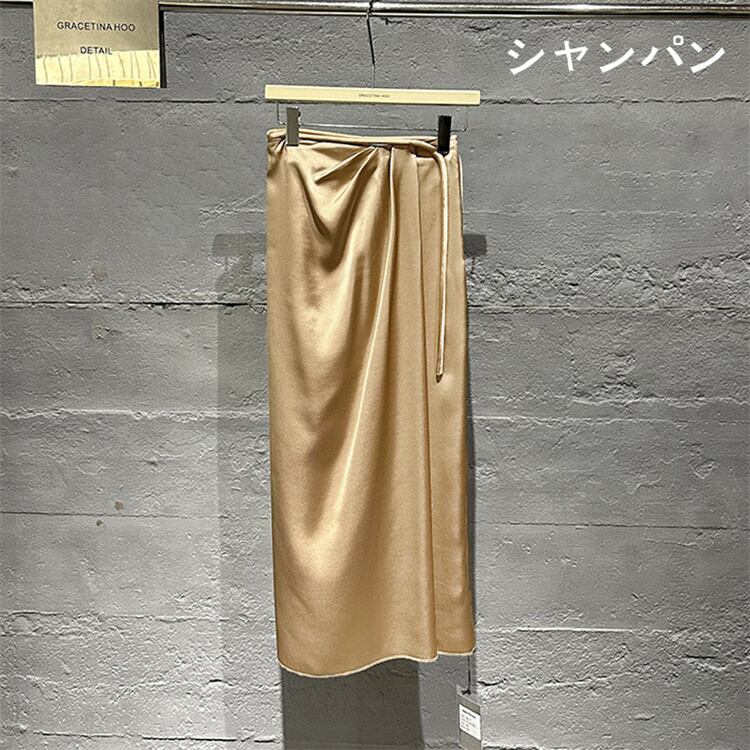 カラー追加 サテンハーフスカート ロングスカート スリム 新品