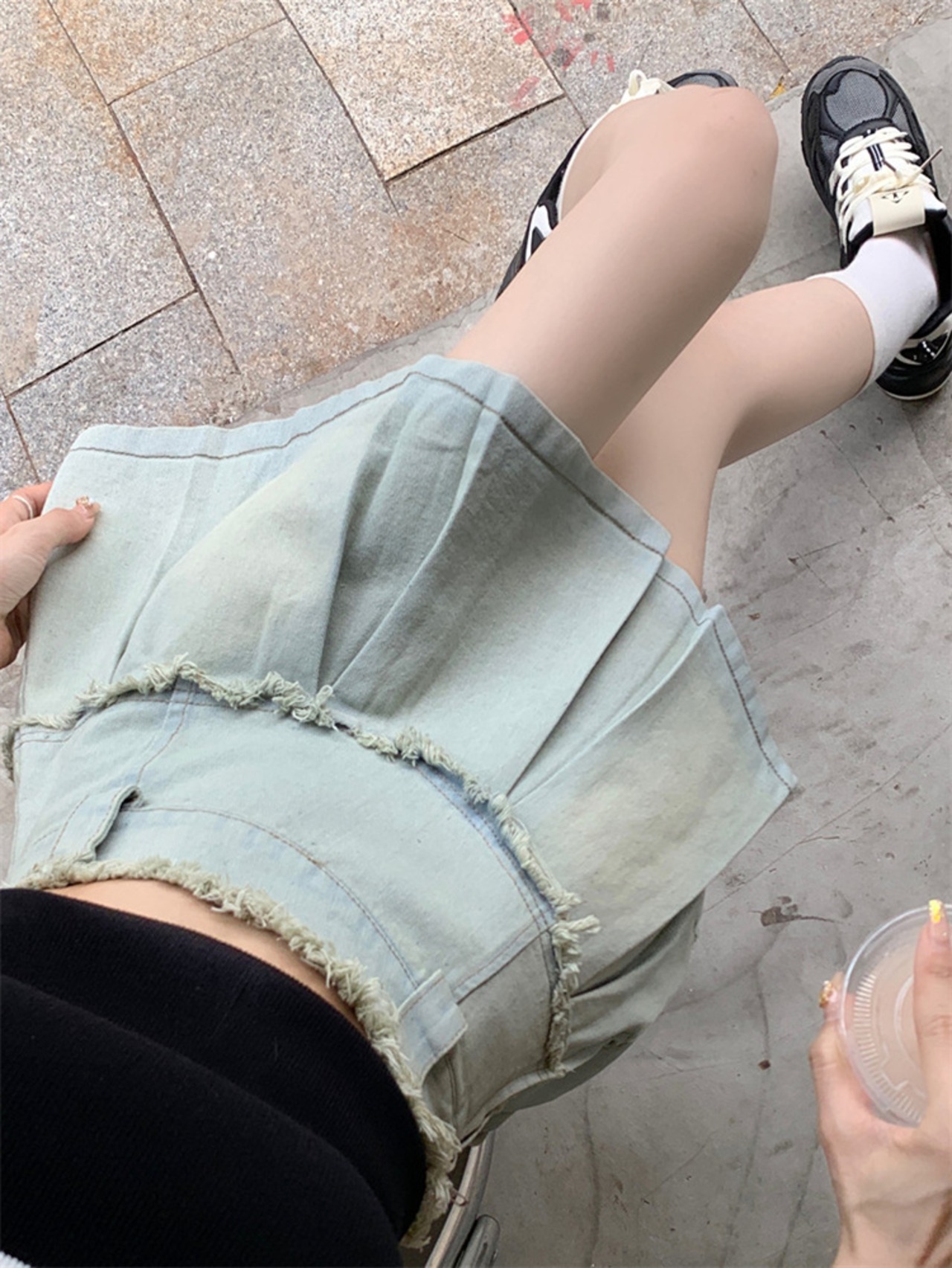 キレイなラインで脚長効果も スタイル スリム プリーツスカート ヴィンテージ デニムハーフ 夏