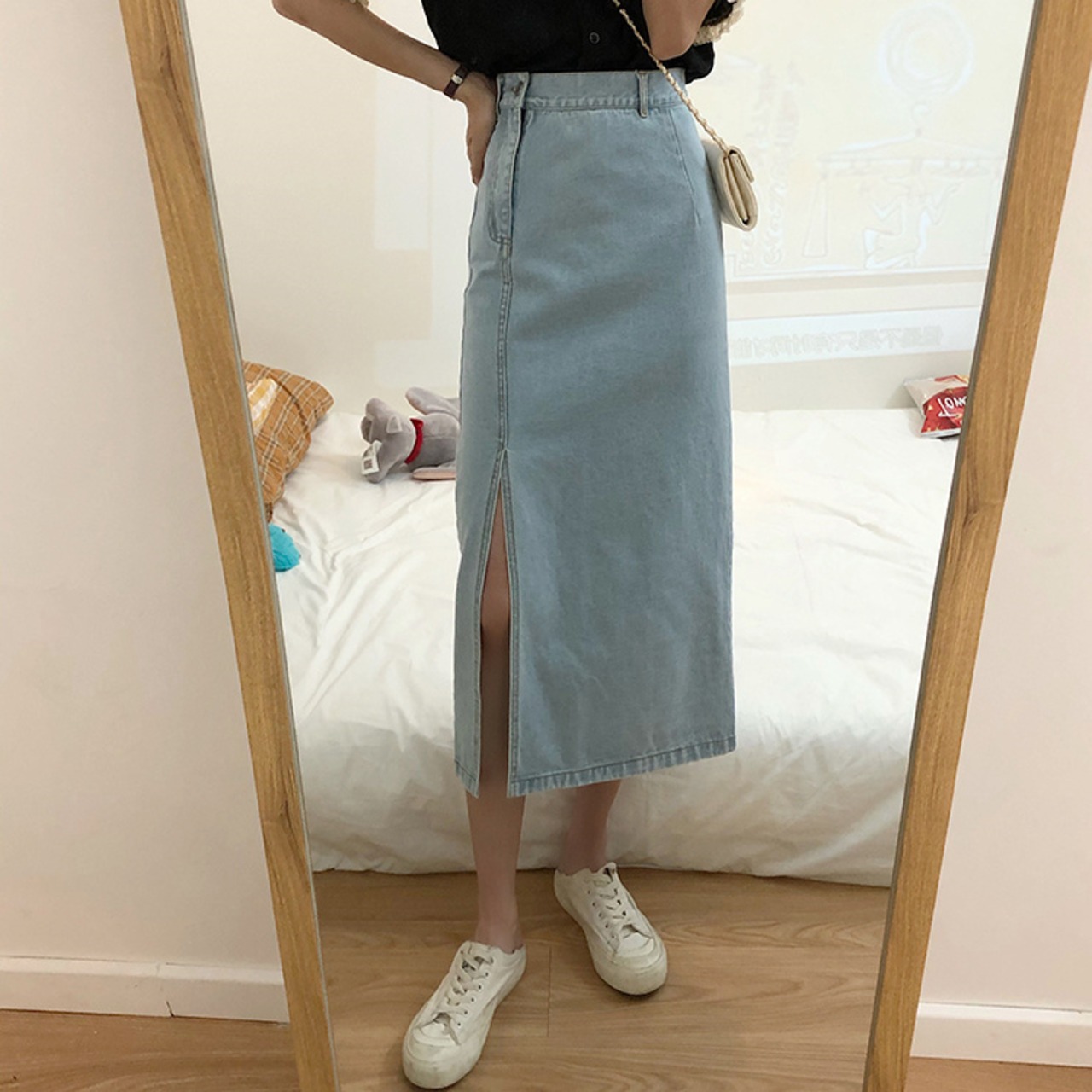 スプリット ハイウエスト タイトスカート デニムハーフ 春
