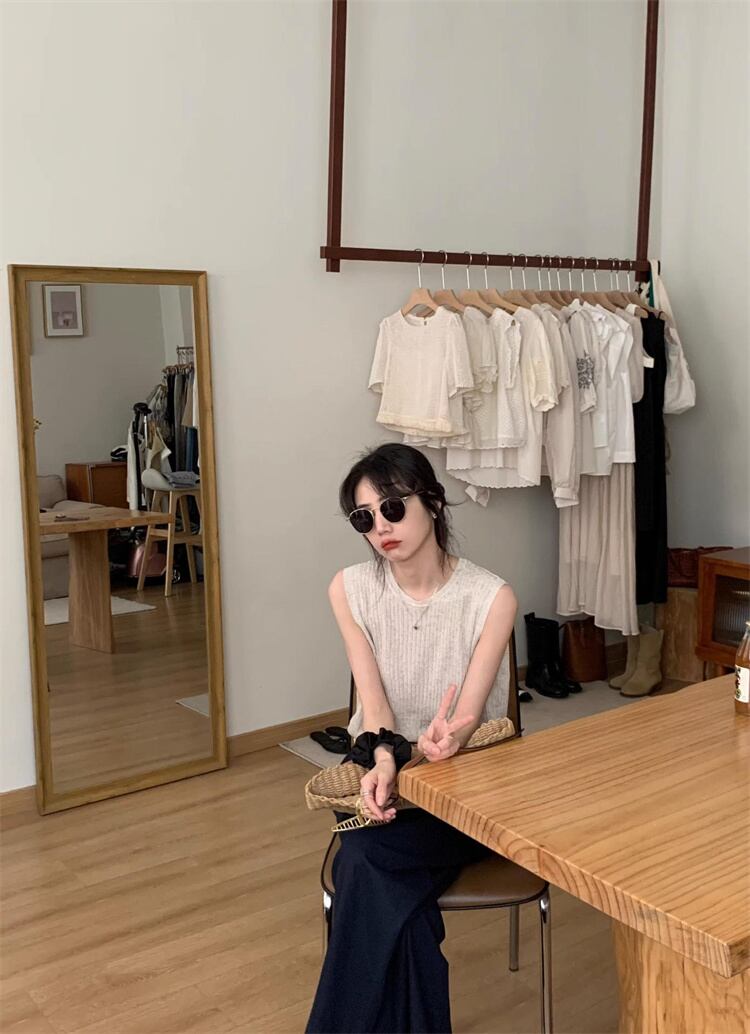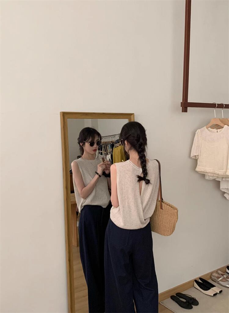 気軽に着れるあったかアイテム 早い者勝ち 袖なしトップス 背透けて ギャザリング ニットベスト スリム