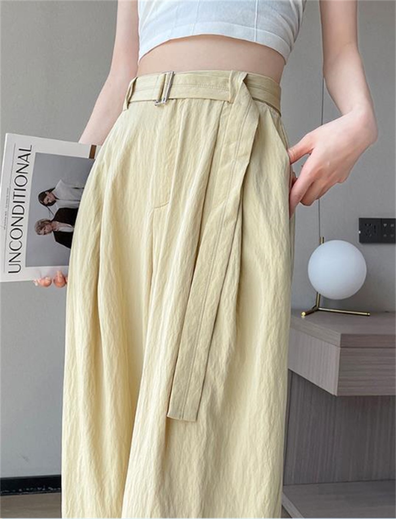 ワイドパンツ ロングパンツ ハイウエスト 薄手 綿麻パンツ