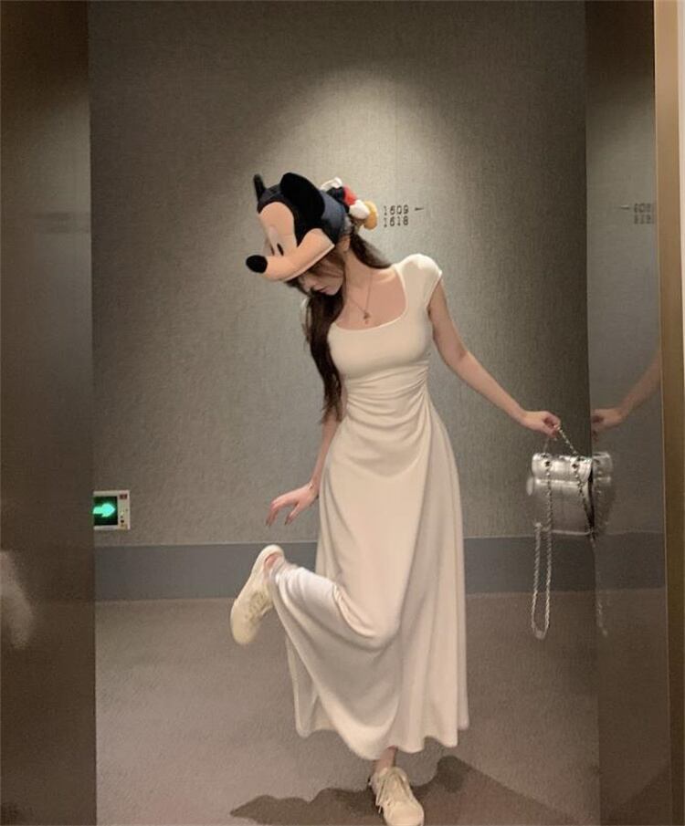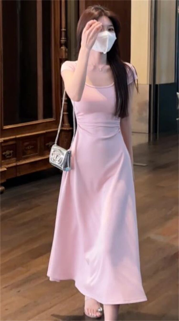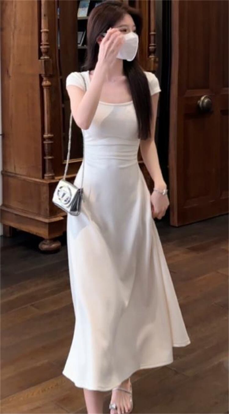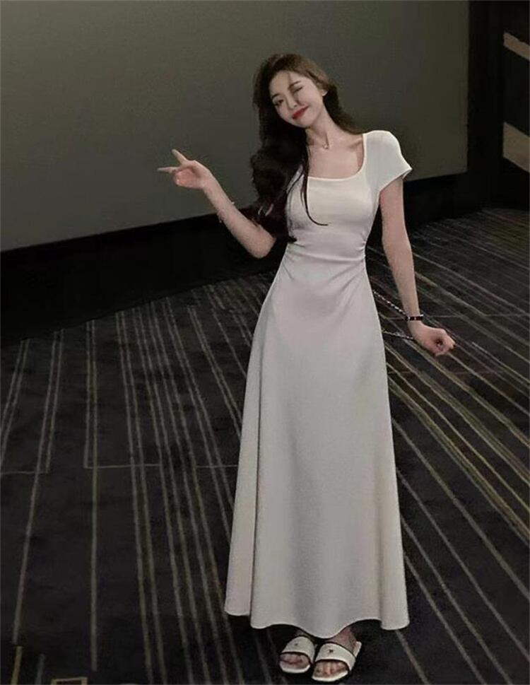 魅力を増すコツ 早い者勝ち ロングスカート 新品 ベーシック 大人気 半袖ワンピース ハイウエスト