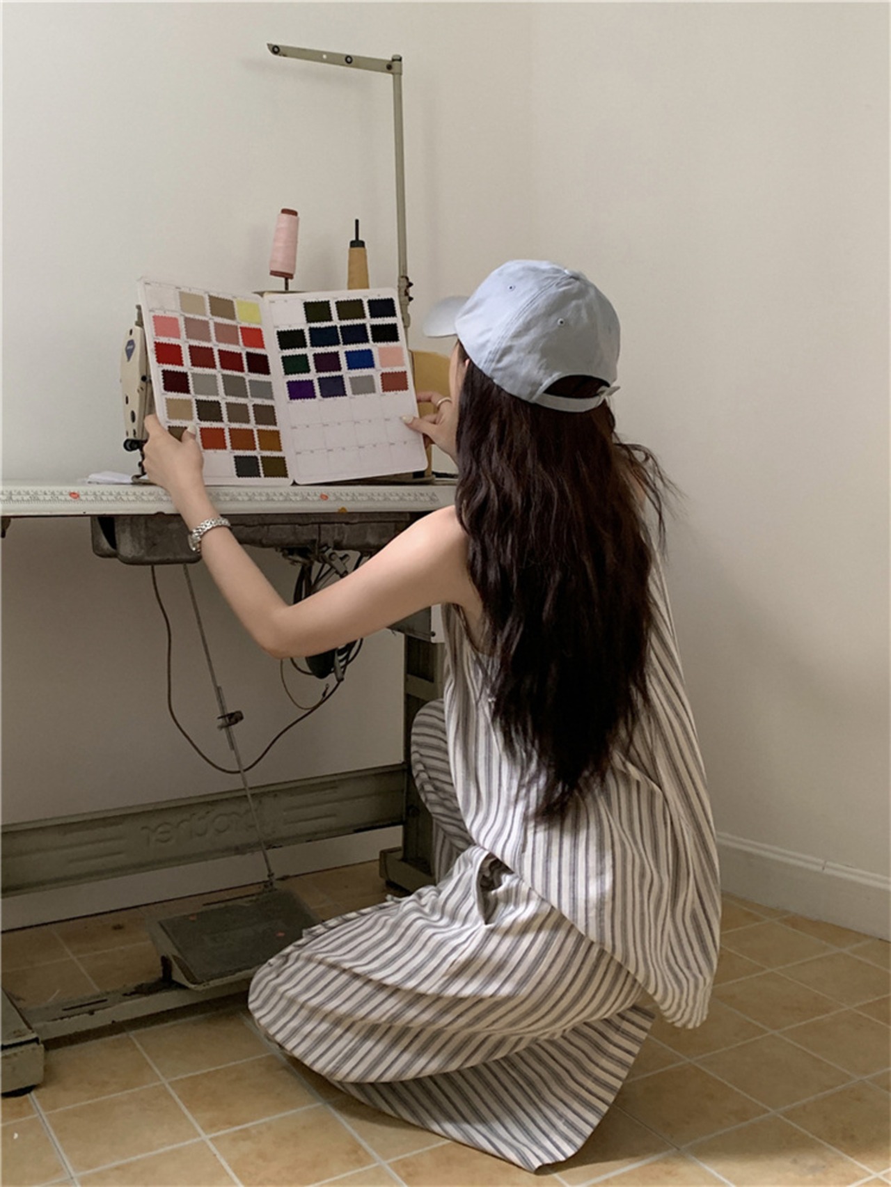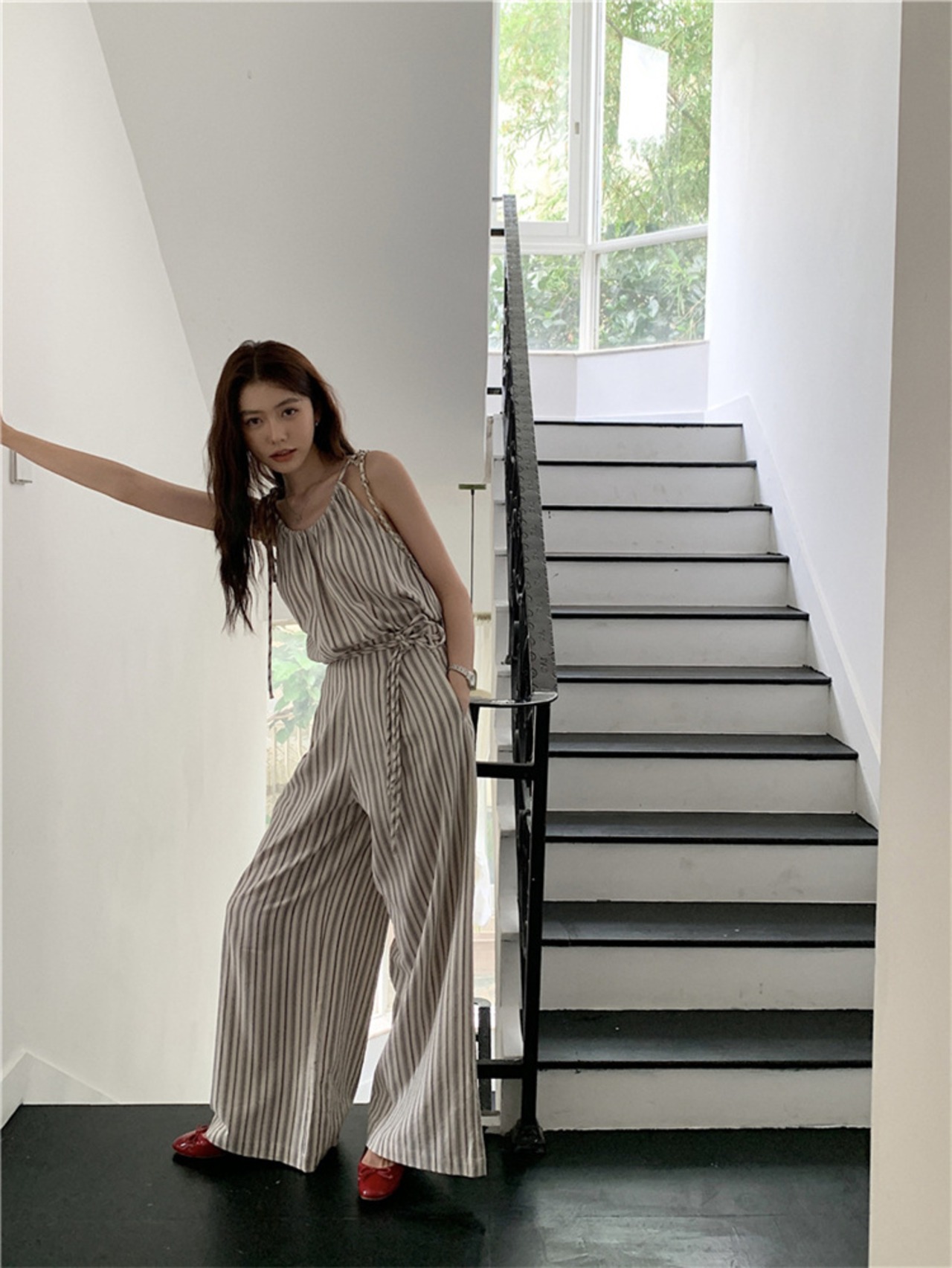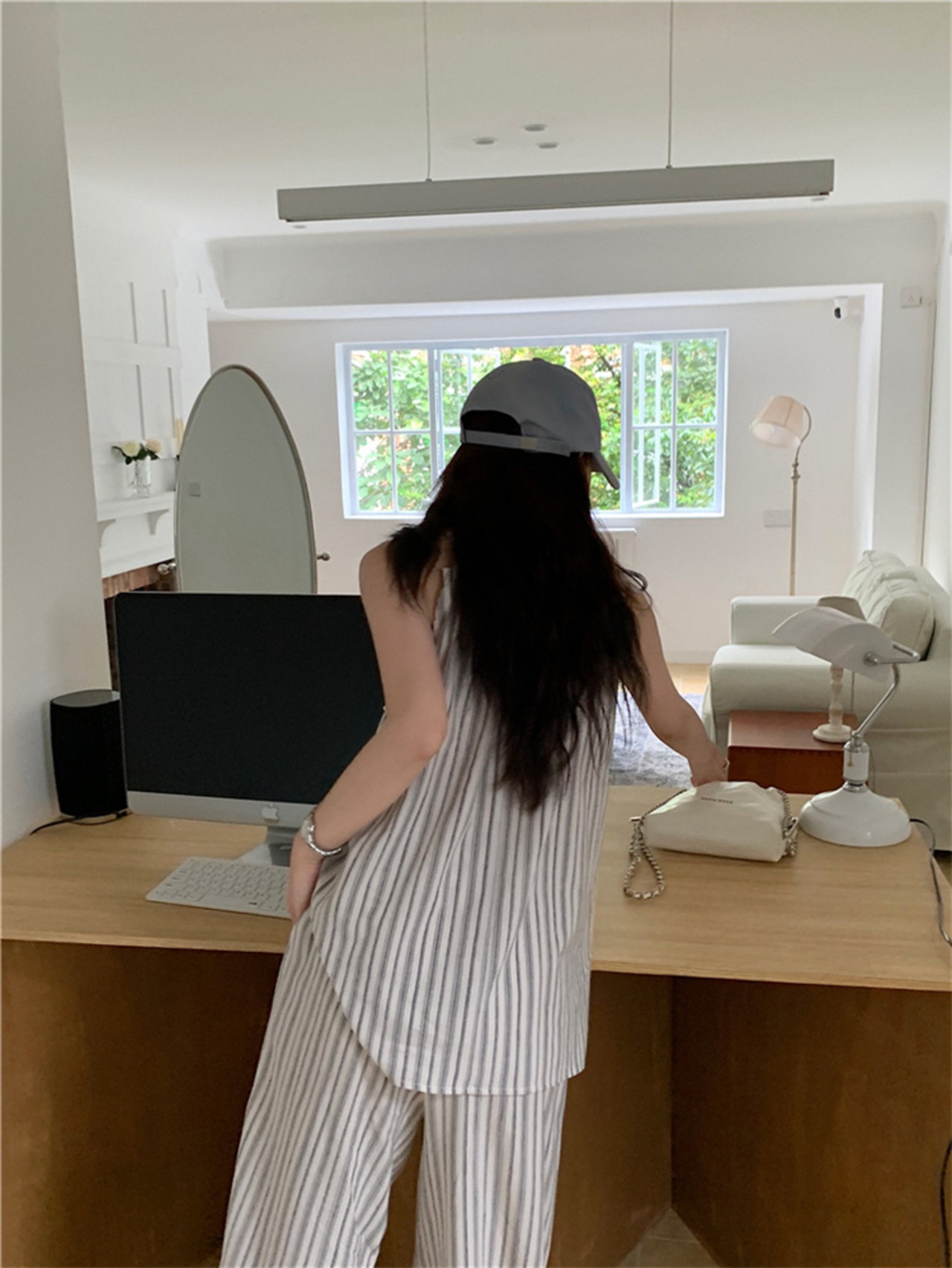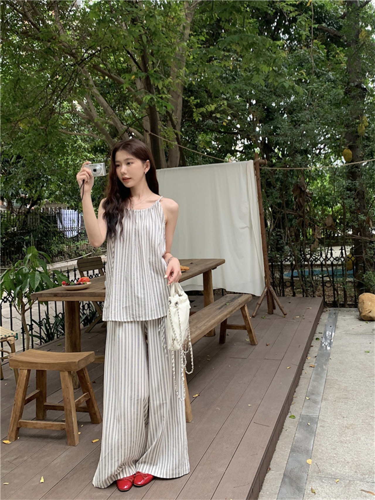 自信を持って ファッション ベアトップ カジュアルパンツ ワイドパンツ 夏 2点セット ストライプ