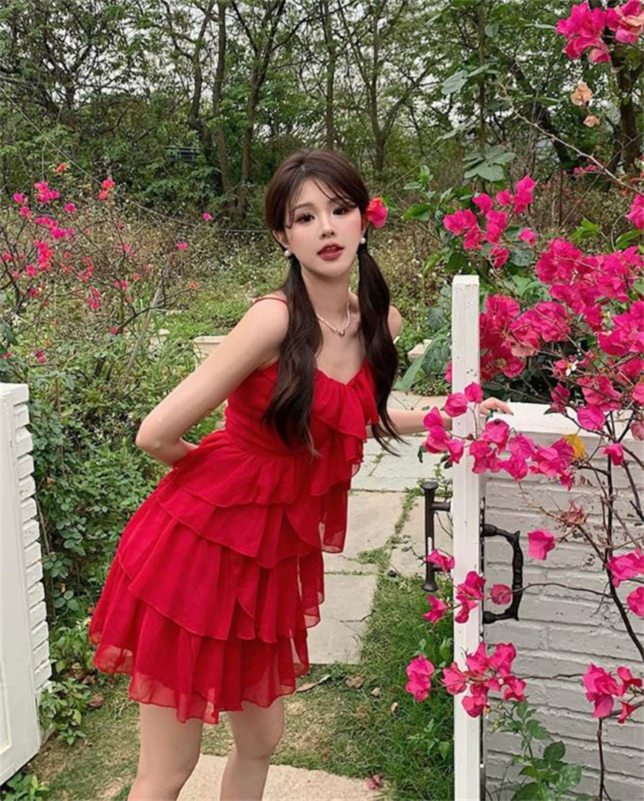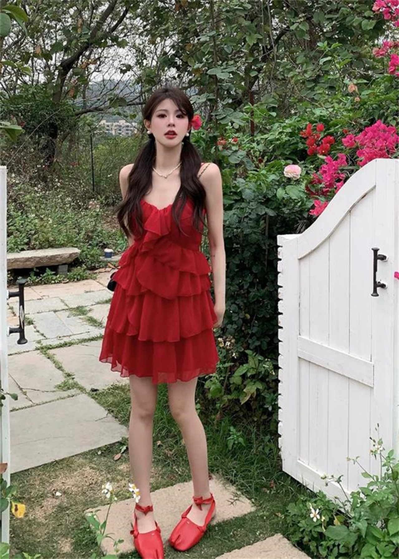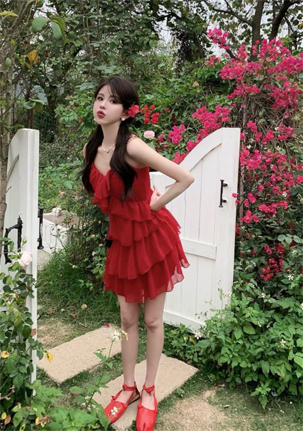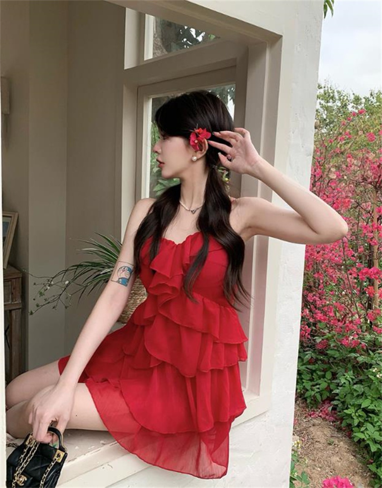 素晴らしい 早い者勝ち 赤いスカート ワンピース キャミワンピ 春夏 ミニスカート お出かけ