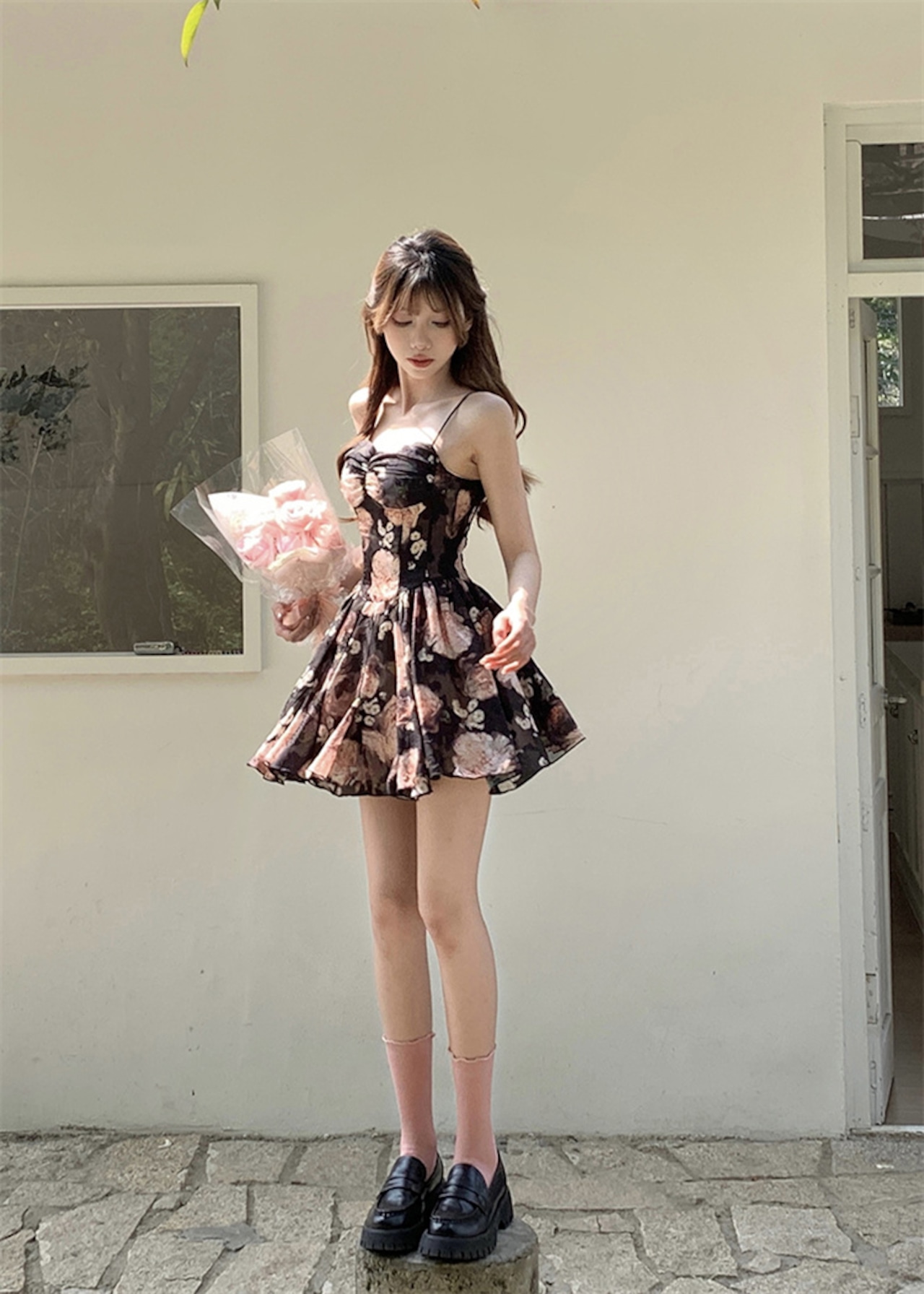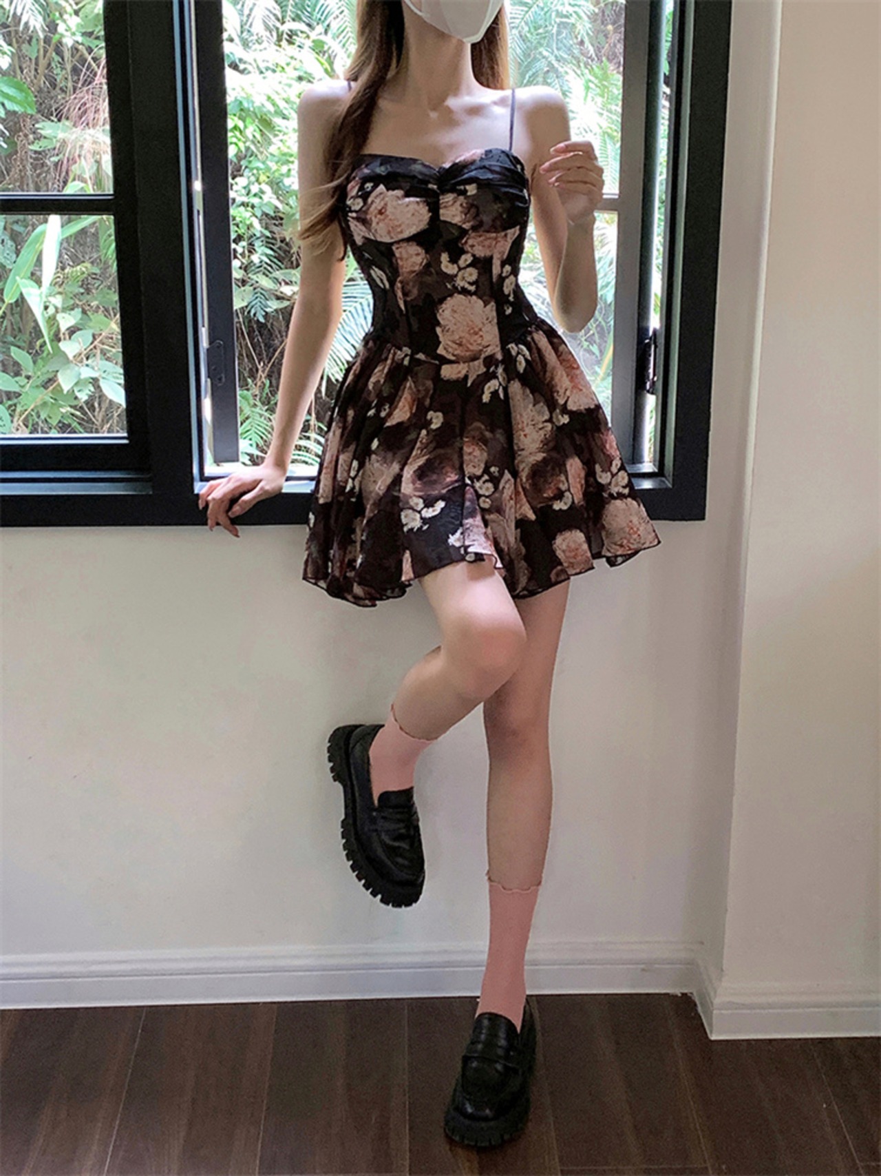 早い者勝ち 雰囲気 快適 Vネック キャミワンピ ミニスカート シフォン