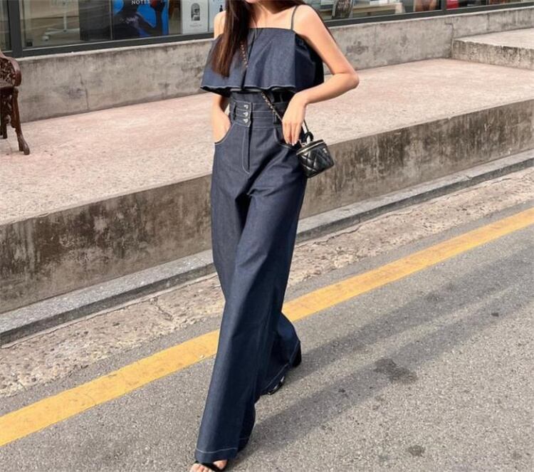 意外なファッション スタイル ロングパンツ 縫付 パンツセット トレンド ブラウス 上着 ベアトップ