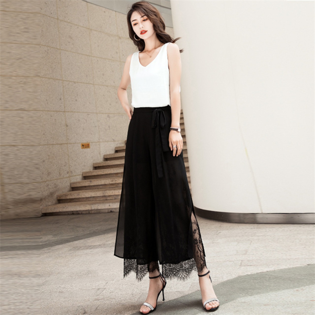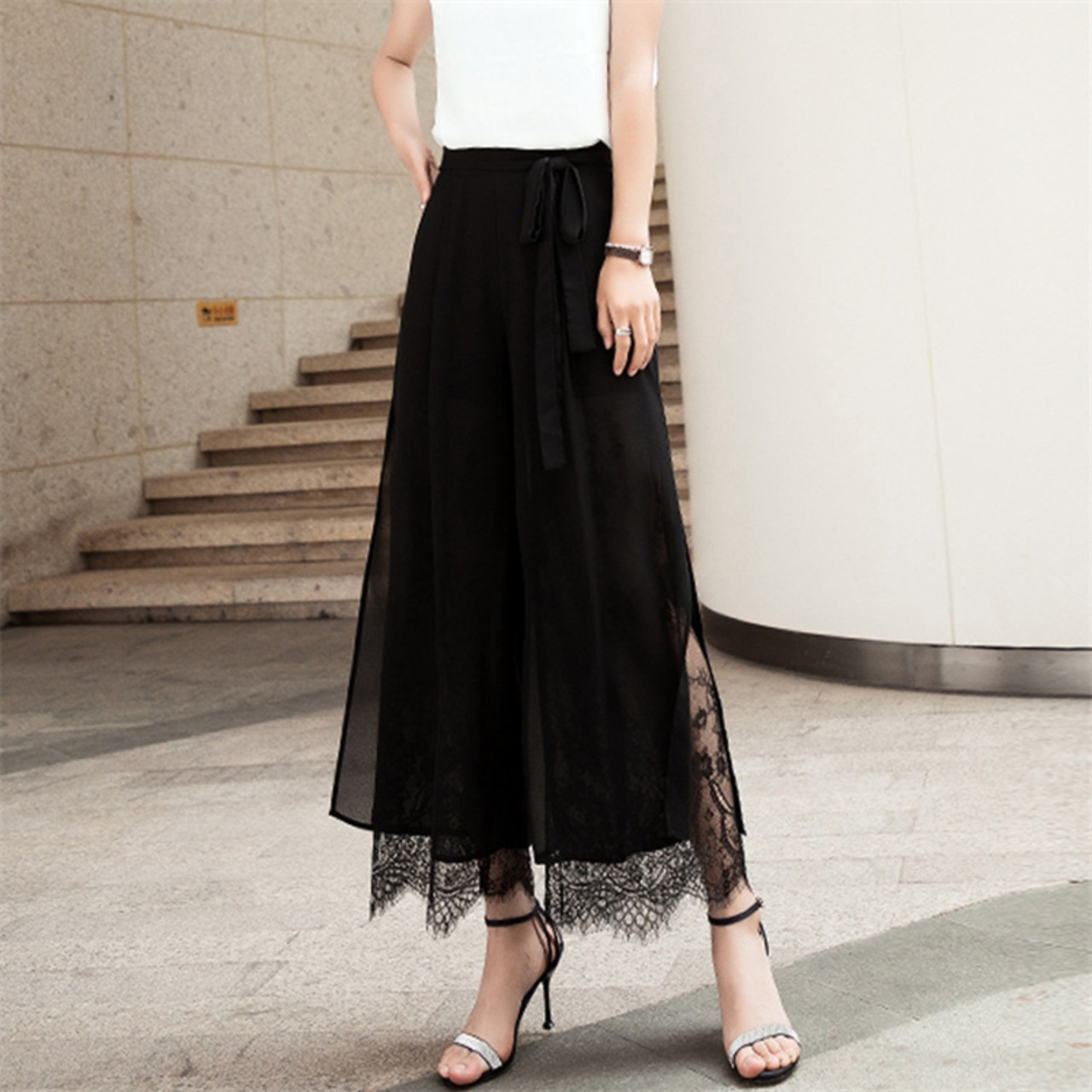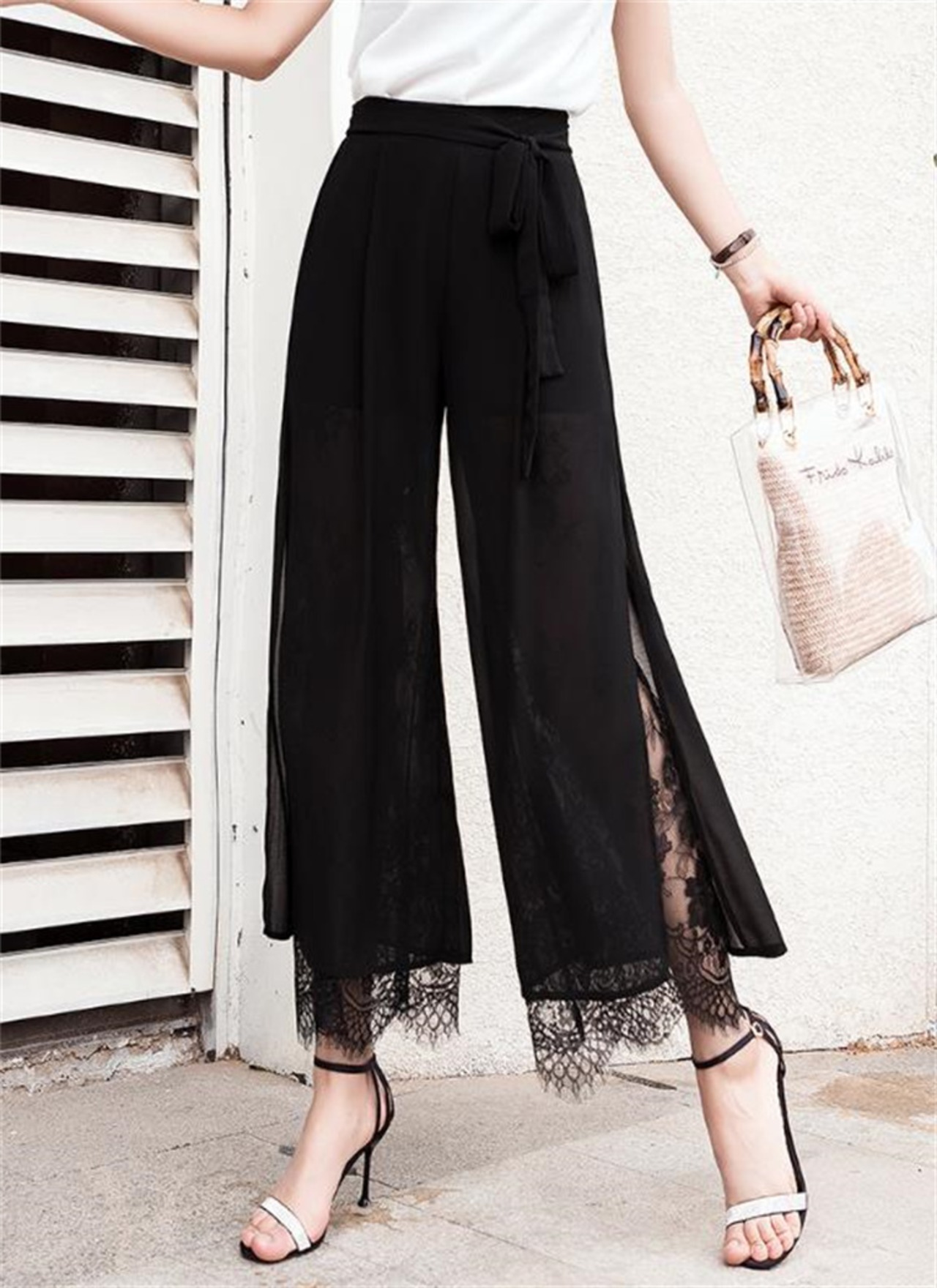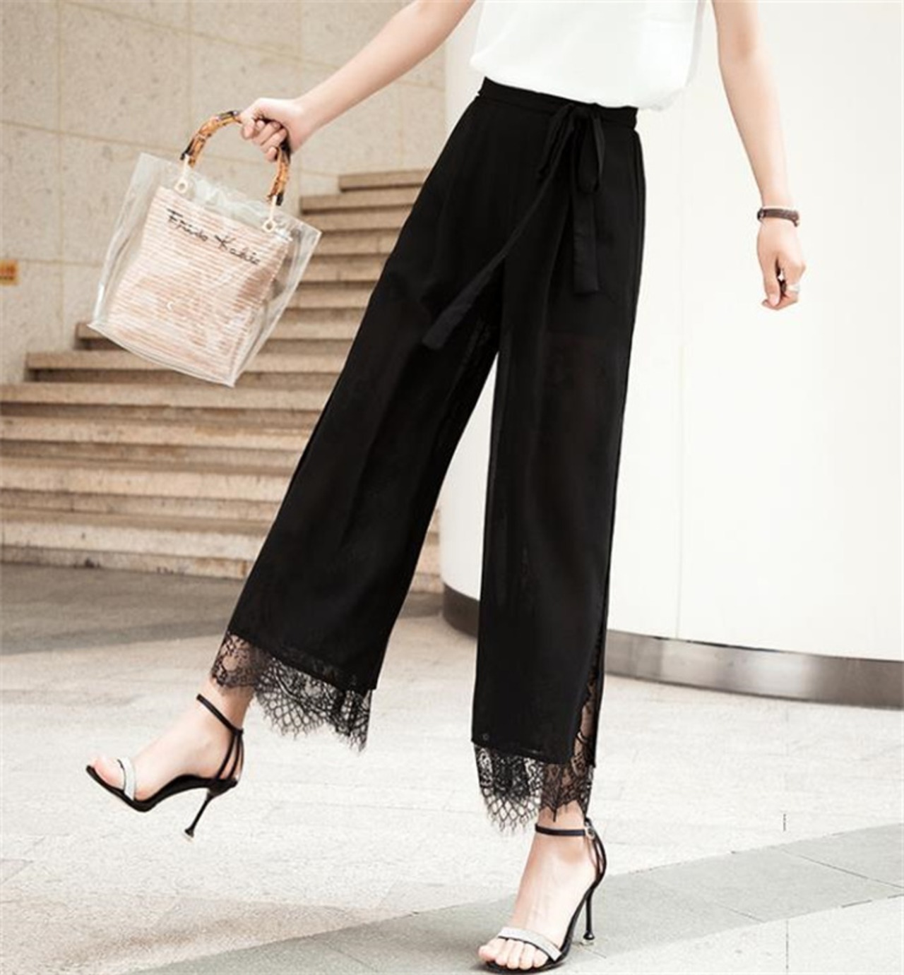 素敵なデザイン 早い者勝ち シフォン ハイウエスト ワイドパンツ ロングパンツ 夏 九分パンツ