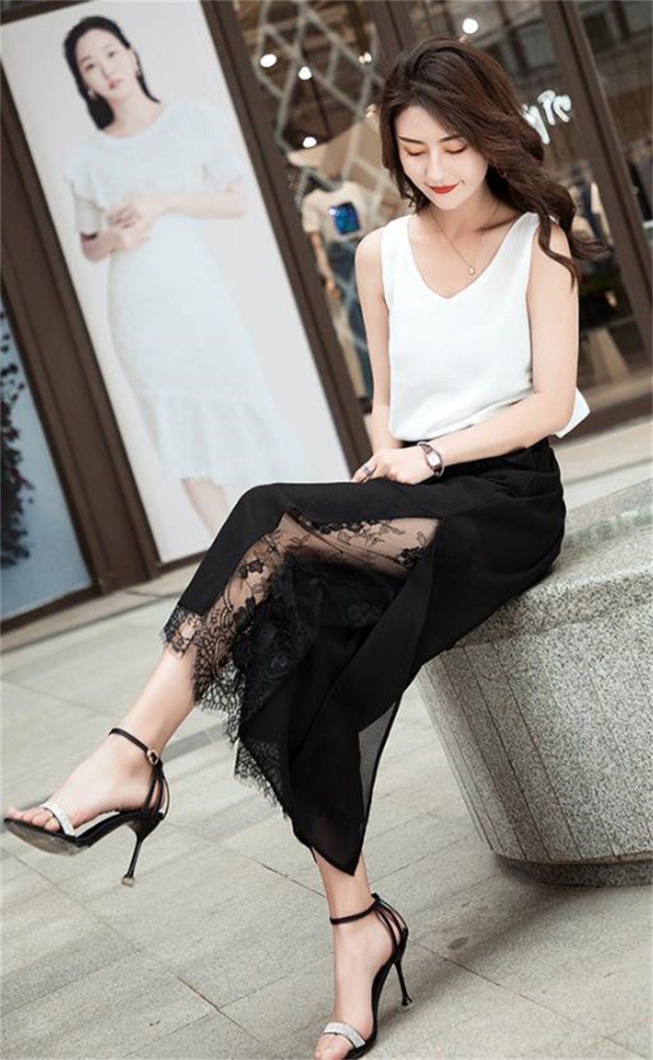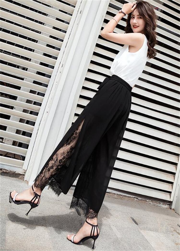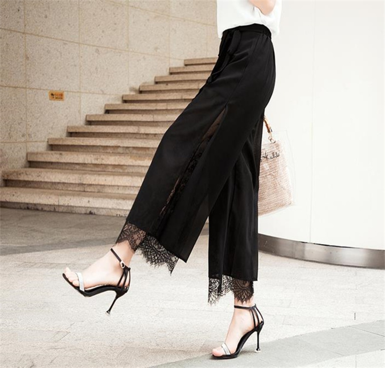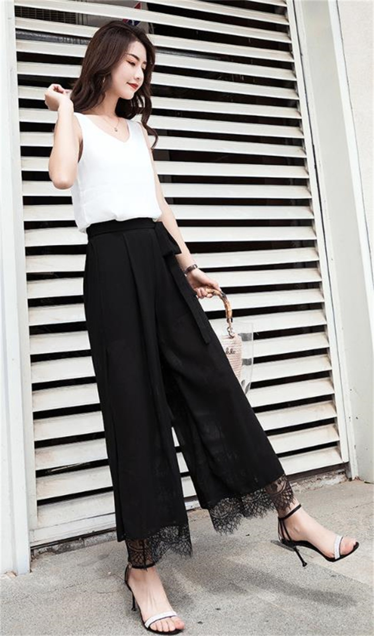 素敵なデザイン 早い者勝ち シフォン ハイウエスト ワイドパンツ ロングパンツ 夏 九分パンツ