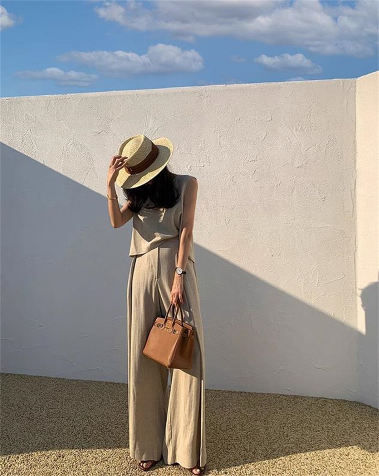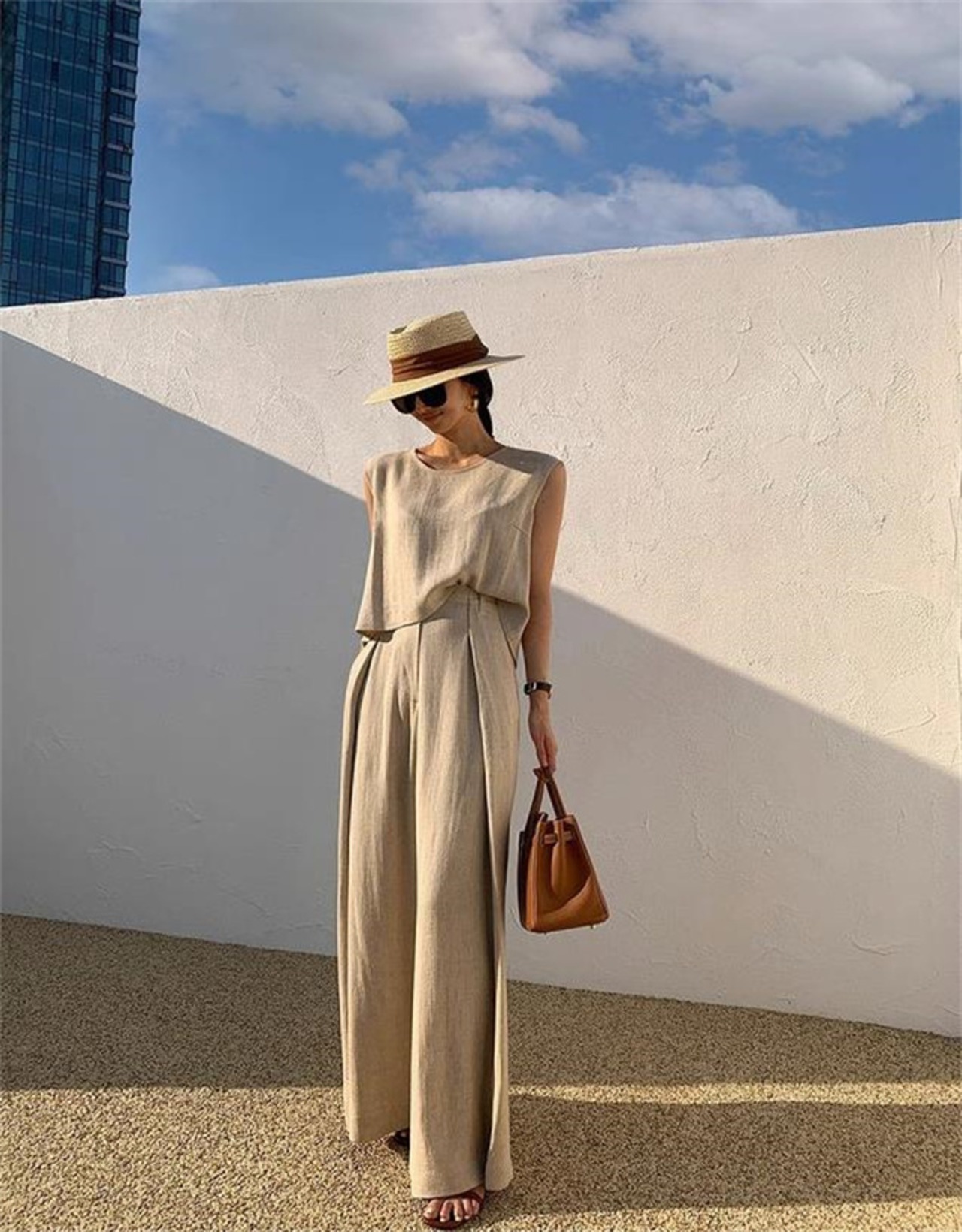 おしゃれの必需品 早い者勝ち タンクトップ 夏 ラウンドネック 2点セット ベスト スラックス 袖なし上着