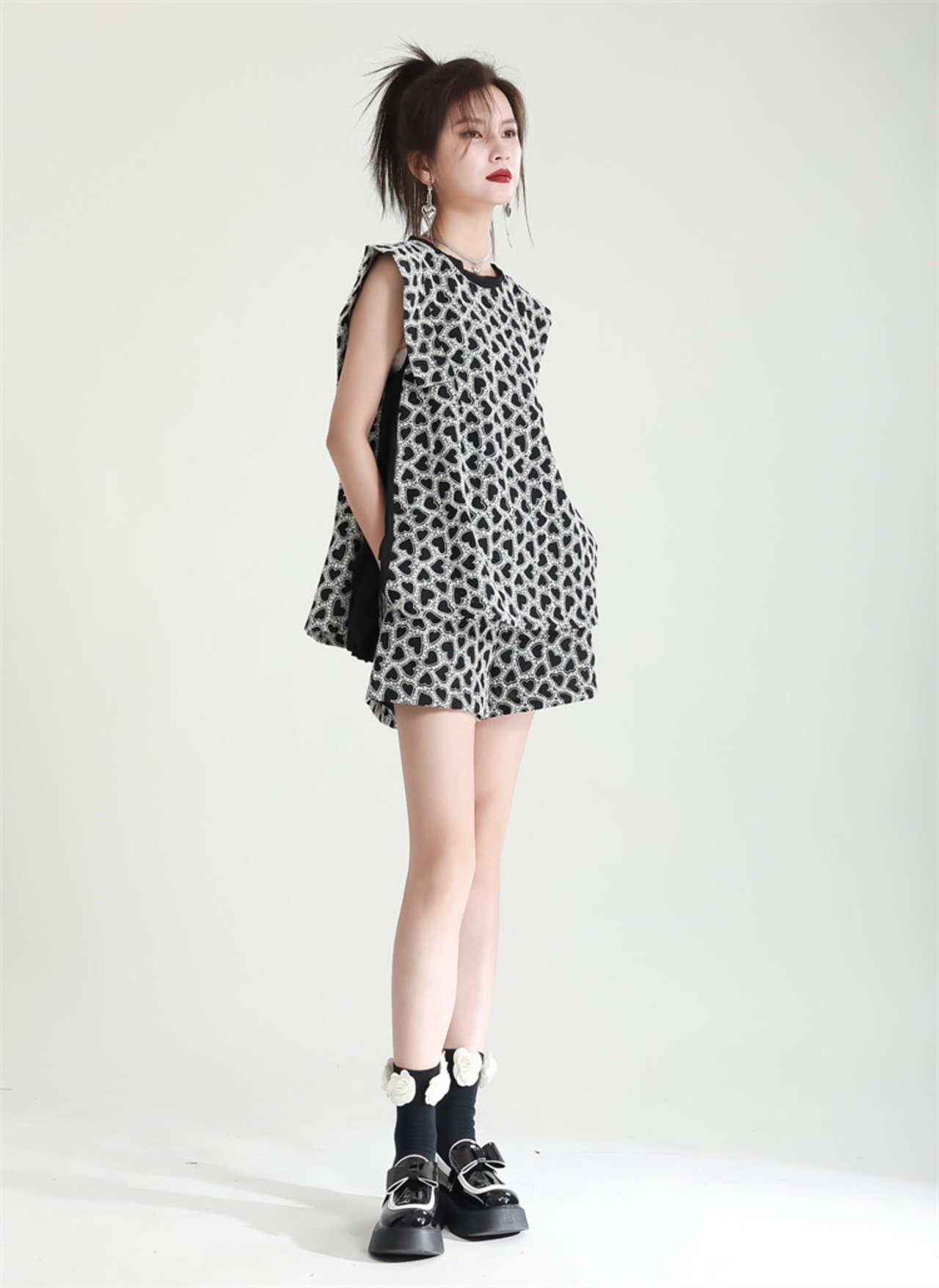 この1枚で今年風に 早い者勝ち ショートパンツ ジャカード オルガンのひだ 2点セット