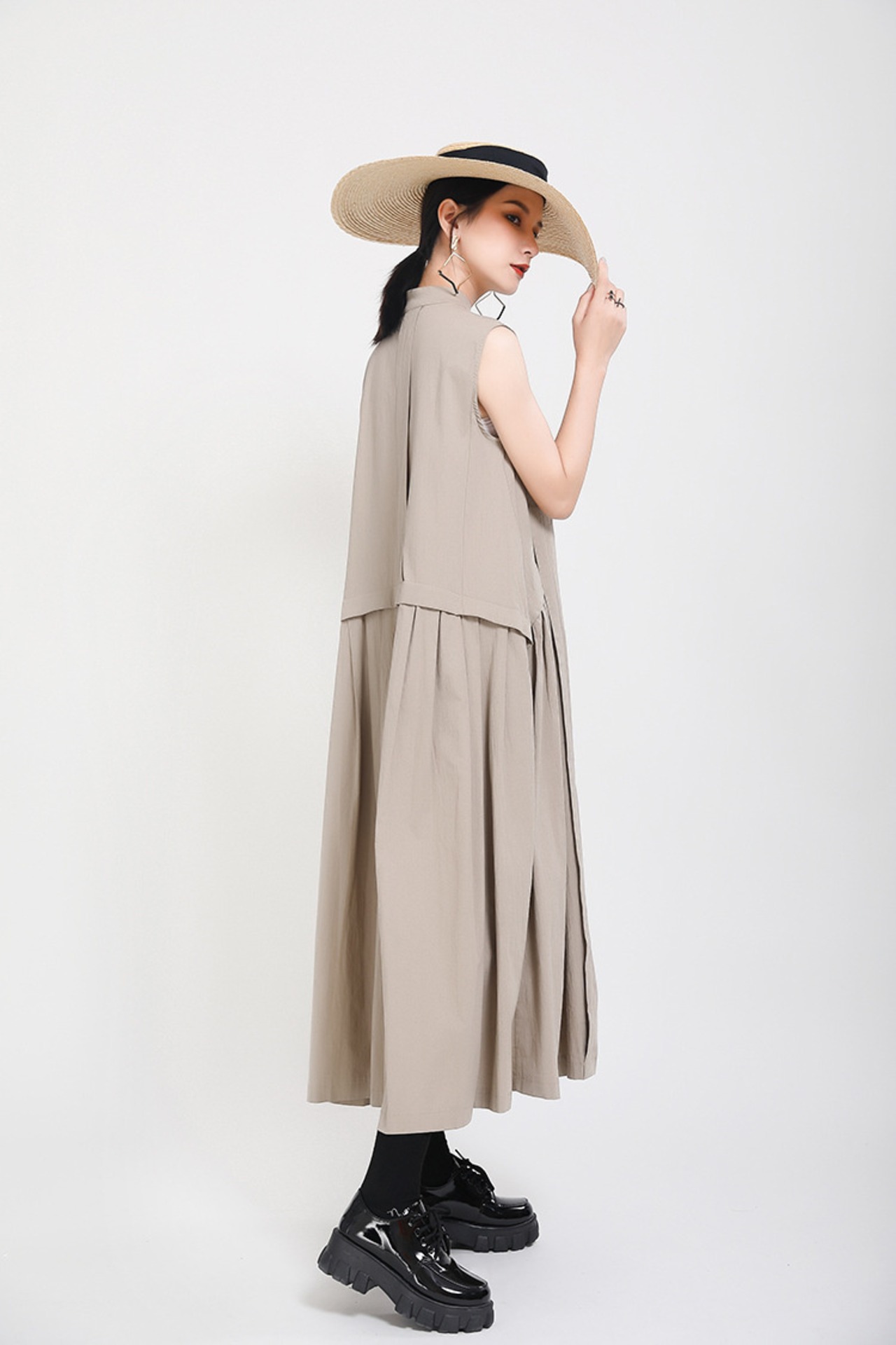 店長推薦 早い者勝ち フェイク2ピース ミニマリスト ジャンパースカート 大人気 綿麻 ロングスカート