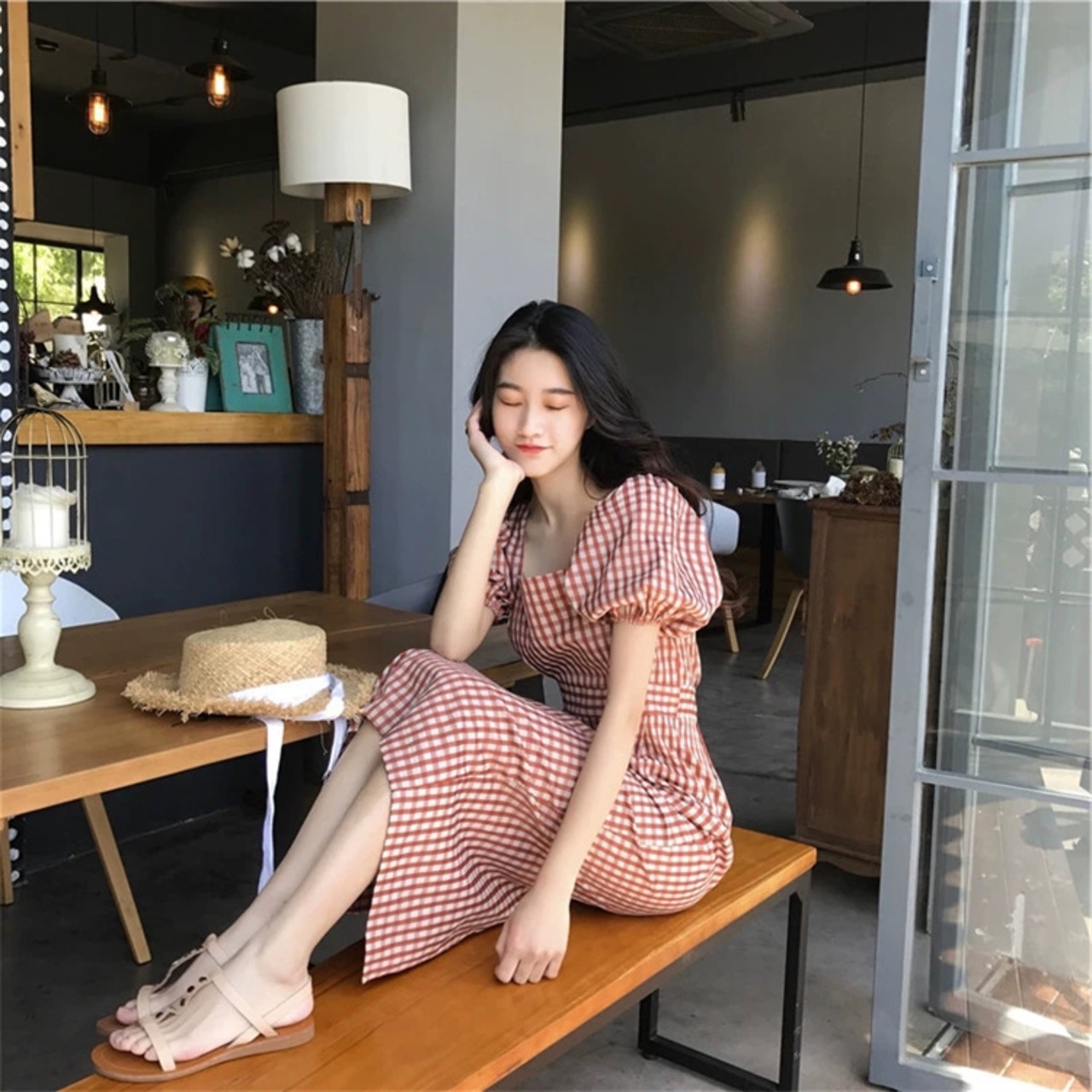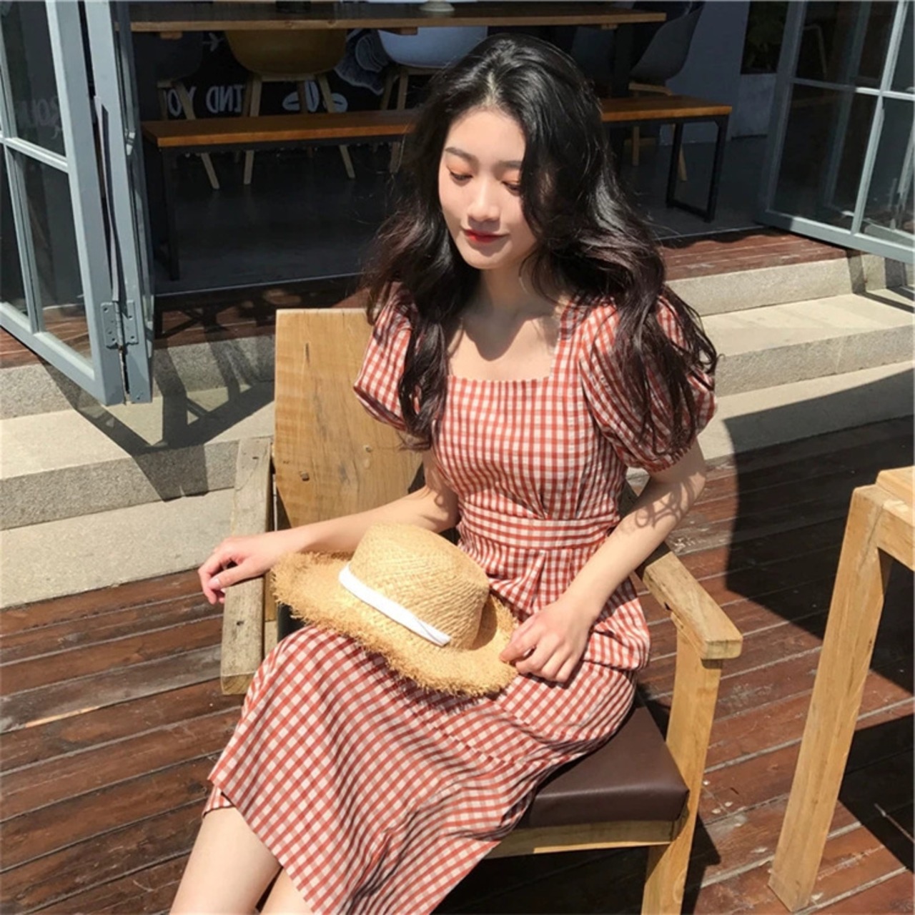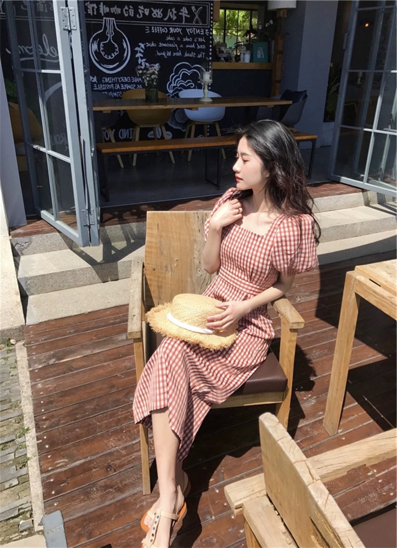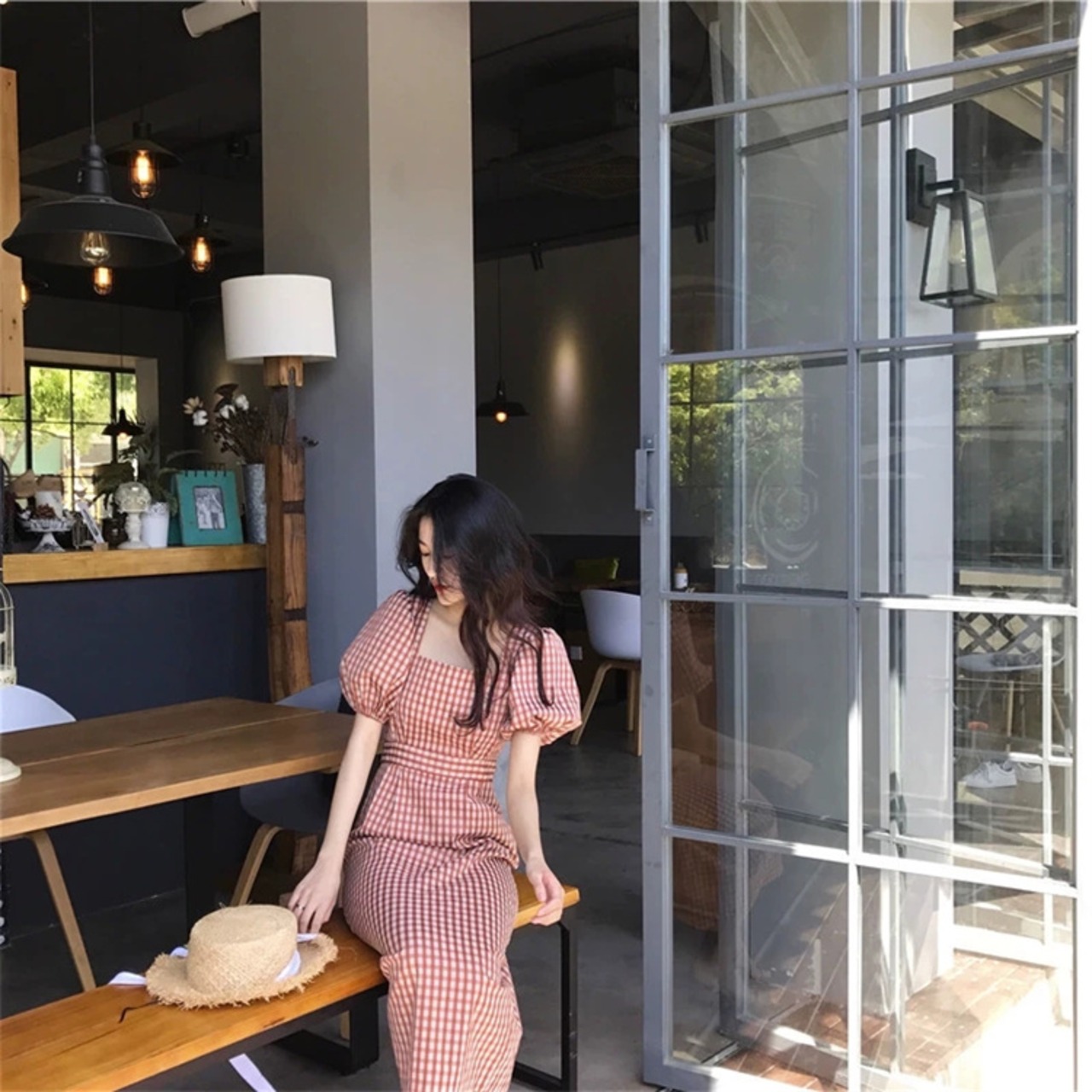 良い姿を見せて 夏 格子縞 ロングスカート 半袖ワンピース上品映え スリム