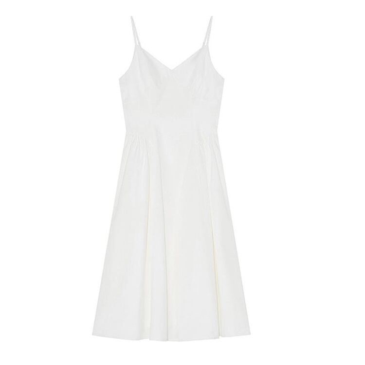 意外なファッション 早い者勝ち ハイウエスト ギャザリング Vネック ロングスカート キャミワンピ