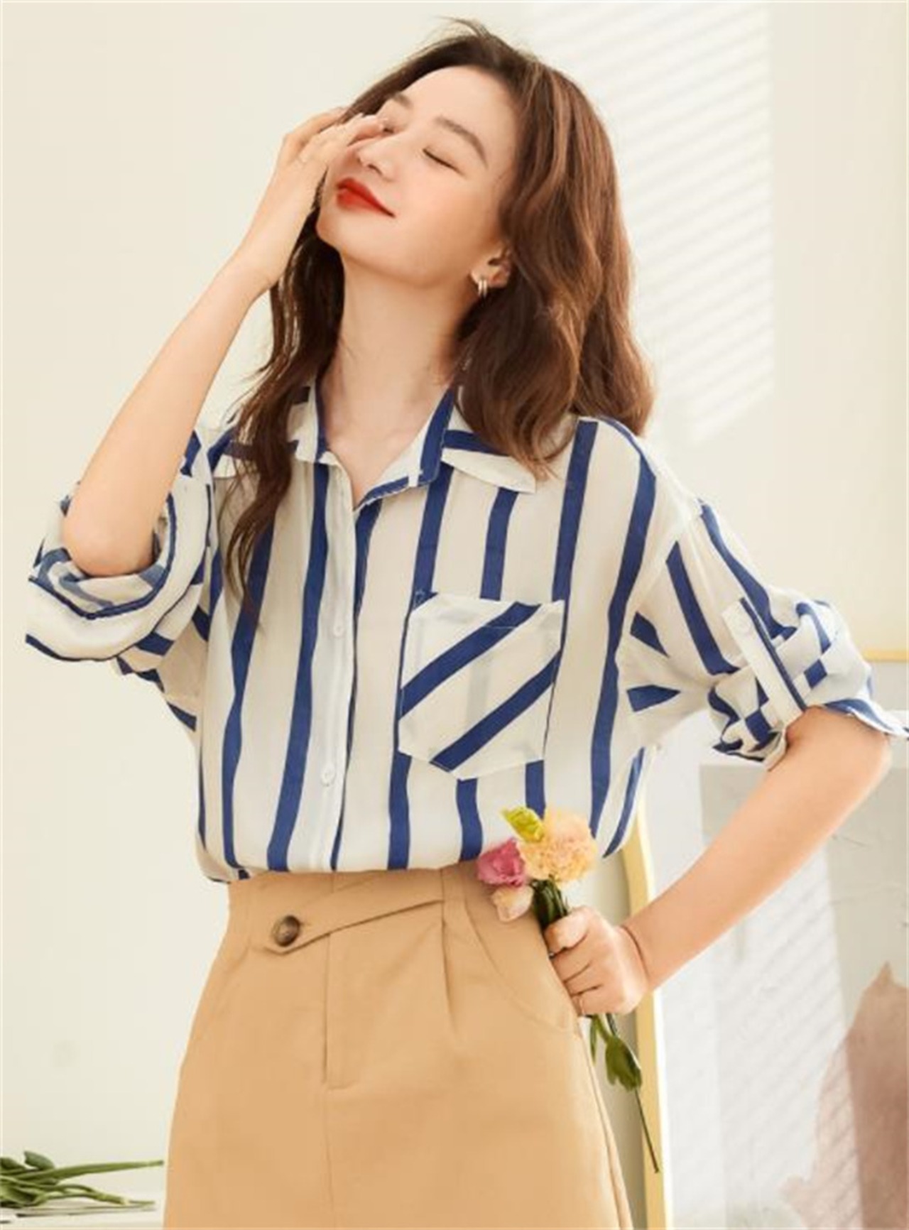 センスがいいです 通勤 ストライプ スリム シンプル ユニークなデザイン シャツ 上着