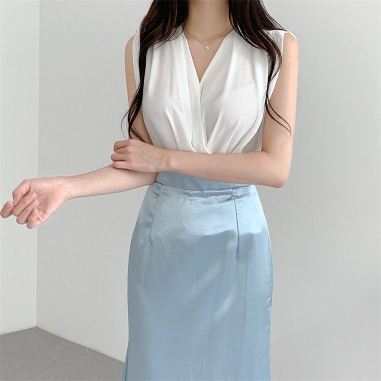 負担感のない綺麗さ vネック 交差する デザインセンス 怠惰な風 ゆったりする シャツ