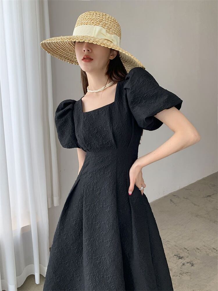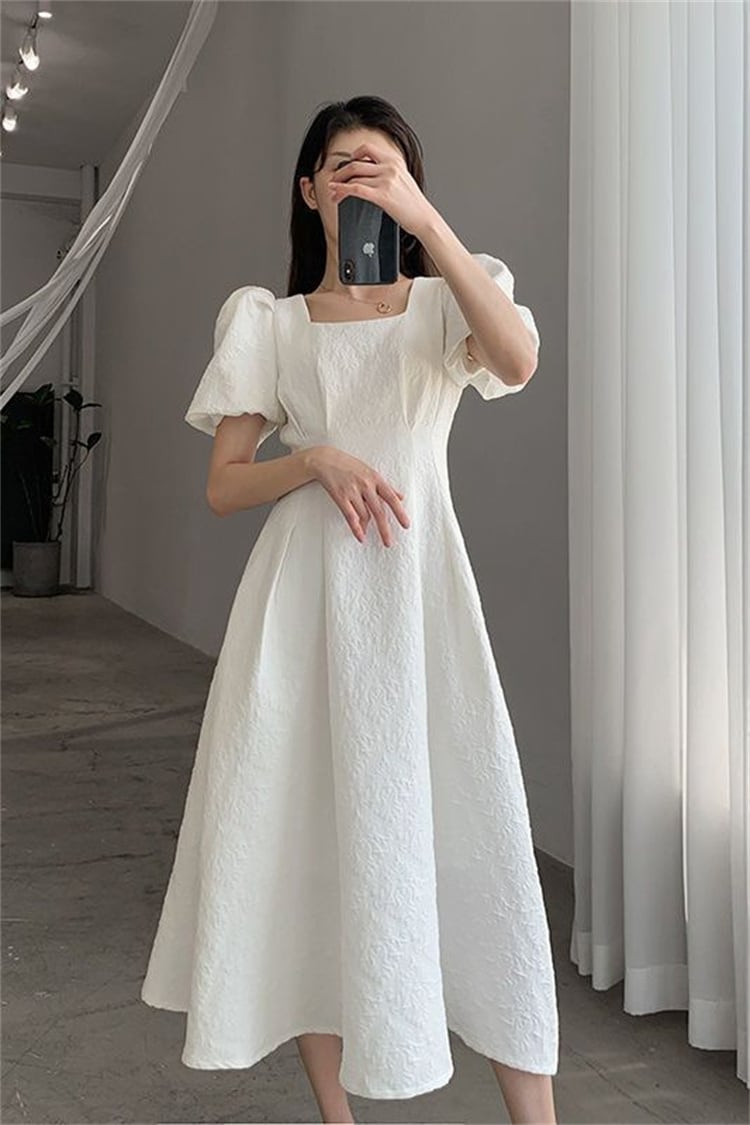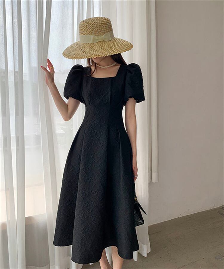 第一印象:素晴らしい 早い者勝ち 半袖ワンピース 初恋 ロングスカート スクエアネック