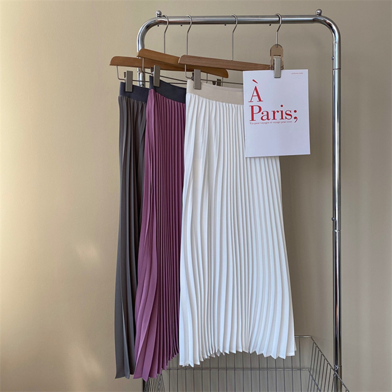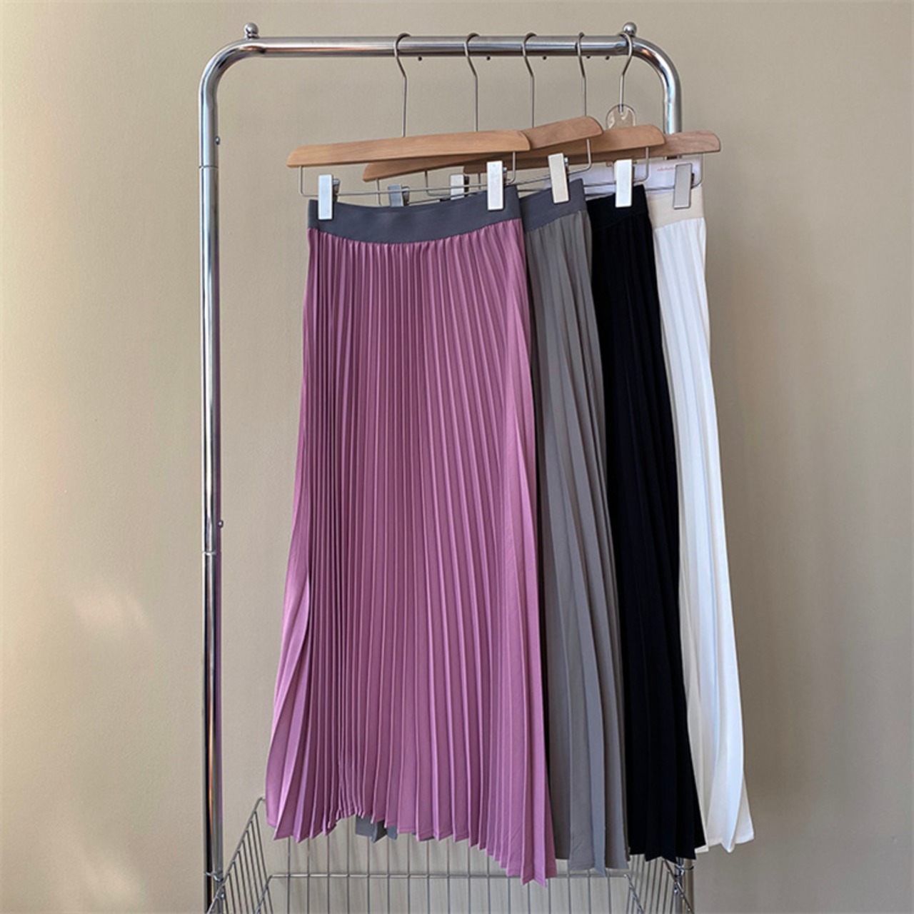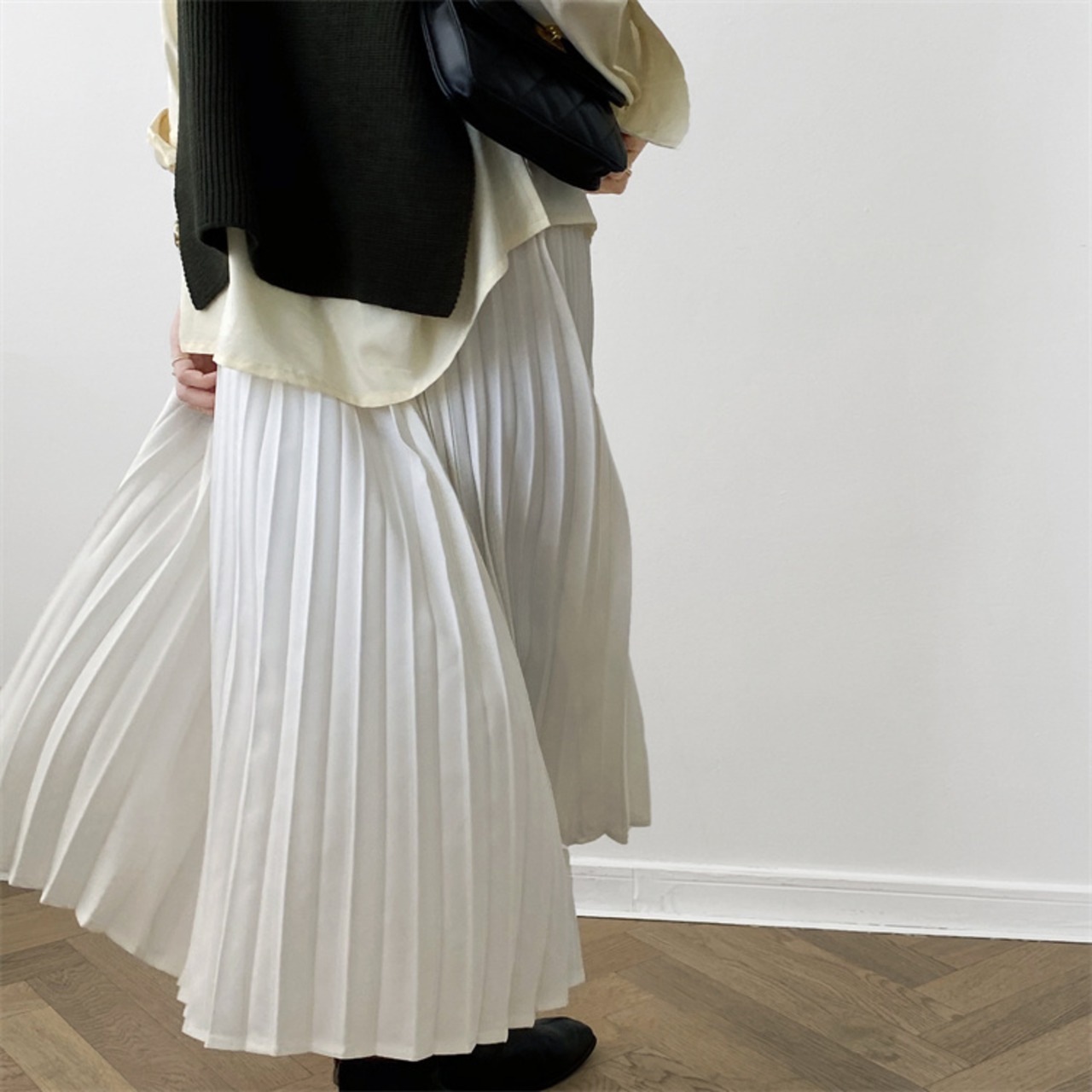 プリーツスカート Aライン スリム ハイウエスト セクション