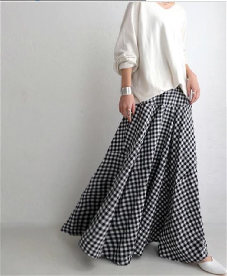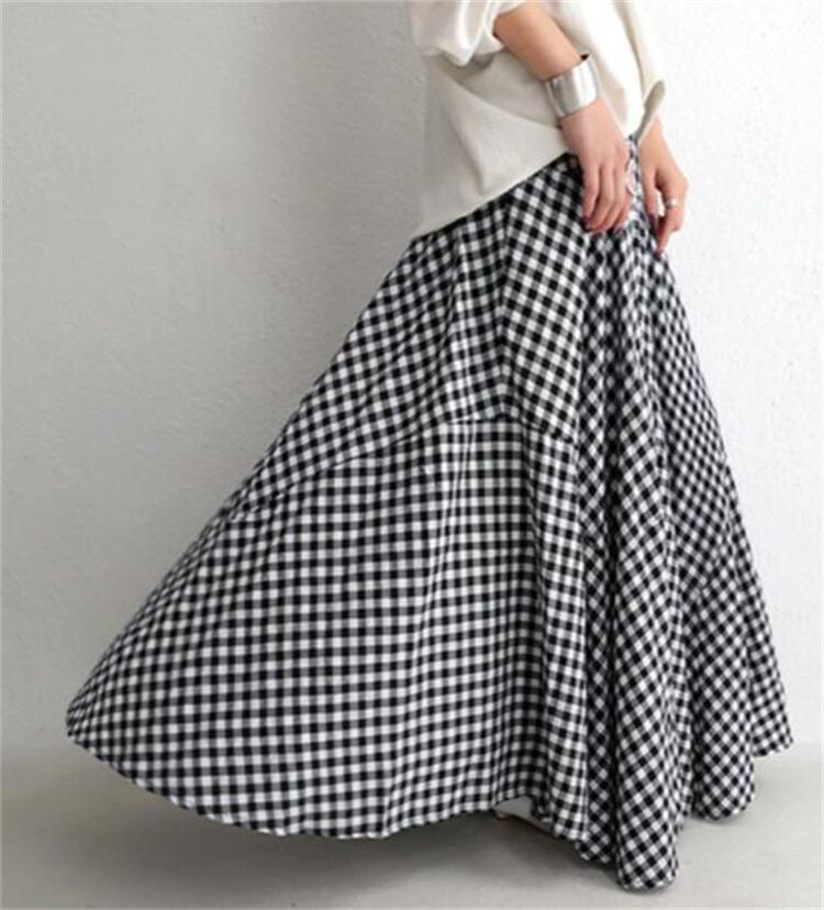 ファッション 新品 ロングスカート 大きい裾 格子縞 スリム