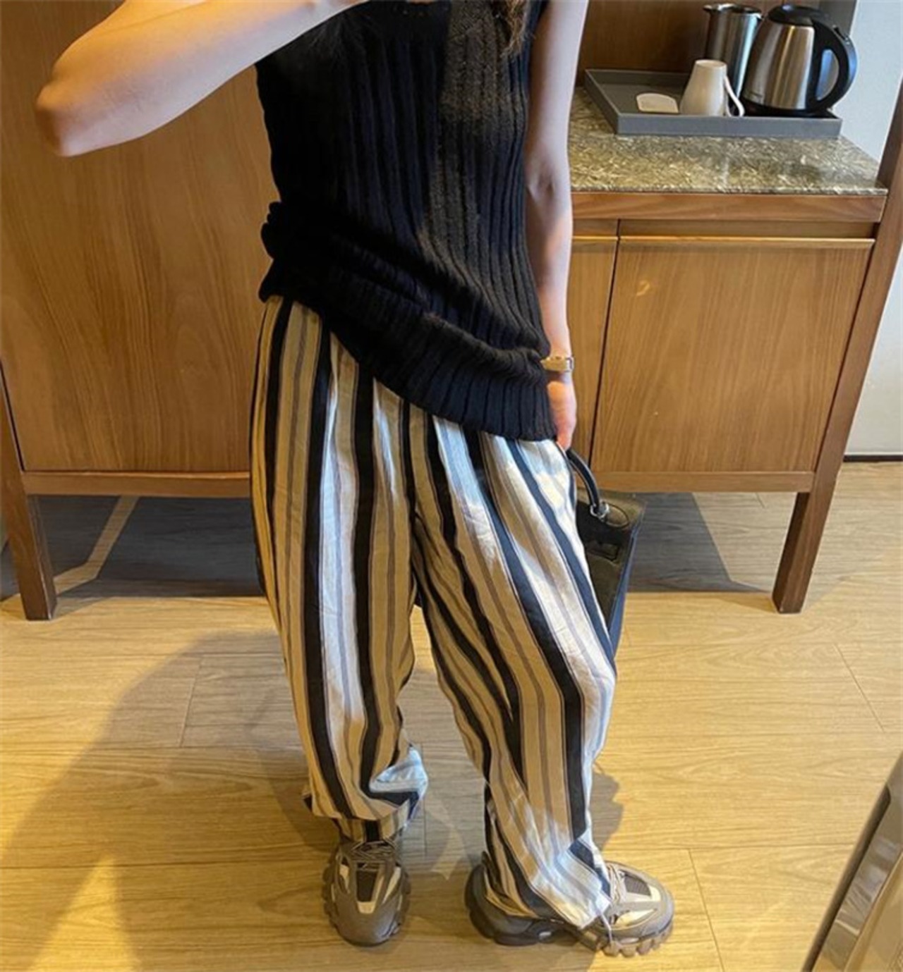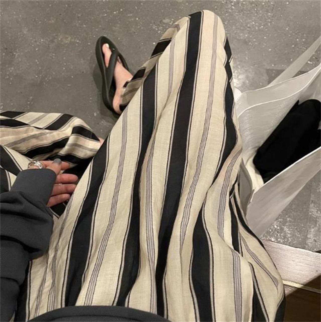 毎日穿きたくなるパンツ スタイル ストライプ 夏 日焼け止め 薄手 スポーツパンツ ロングパンツ