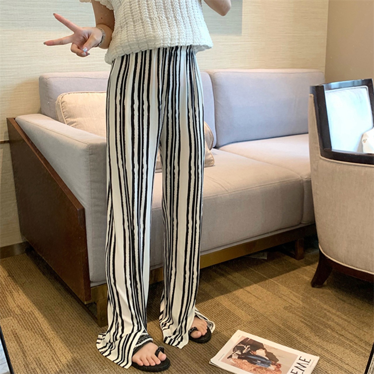 トレンド感たっぷり プリーツ ハイウエスト ロングパンツ ストライプ ワイドパンツ