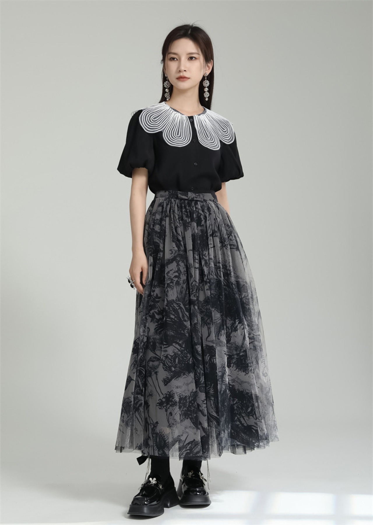 早い者勝ち レーヨン Aライン 大振り ロングスカート デザインセンス