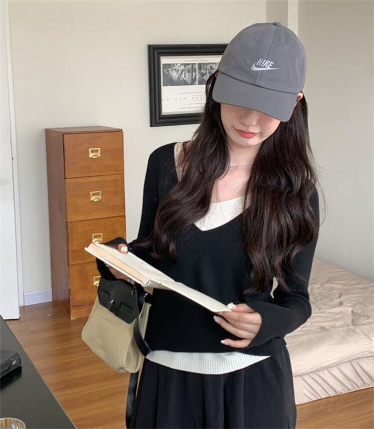 ファッション トップス sweet系 スリム Vネック フェイク2ピース