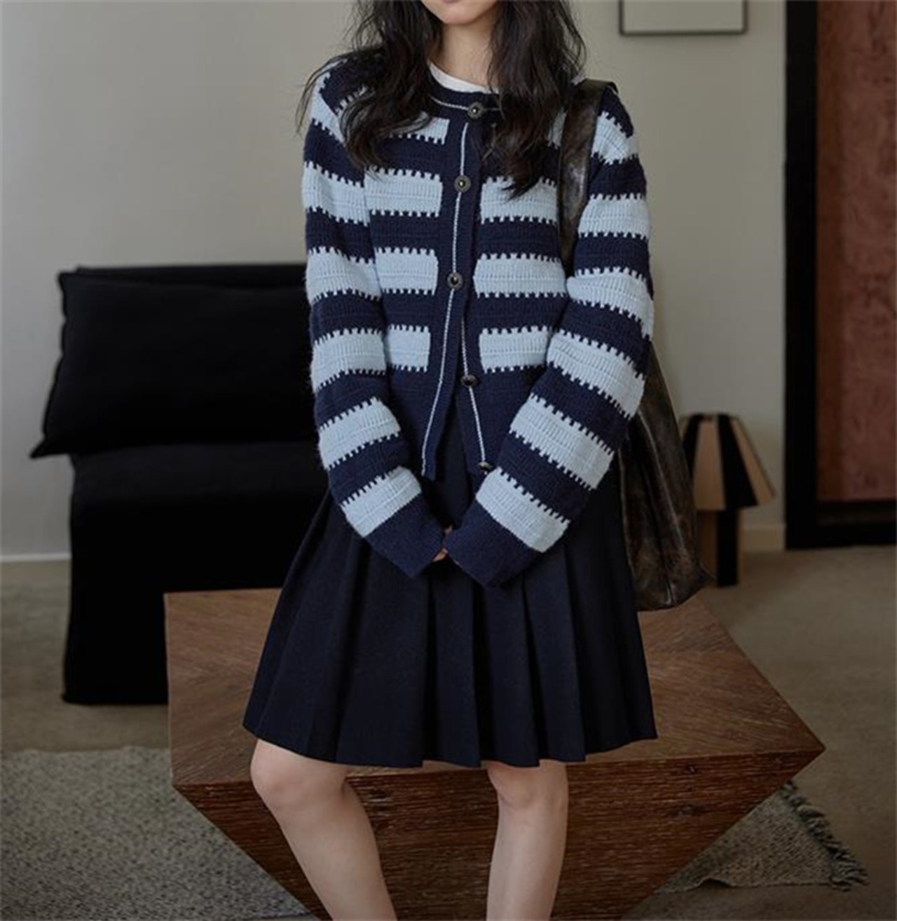 セーター 秋 カーディガン ボーダー人気 上着 ニットトップス