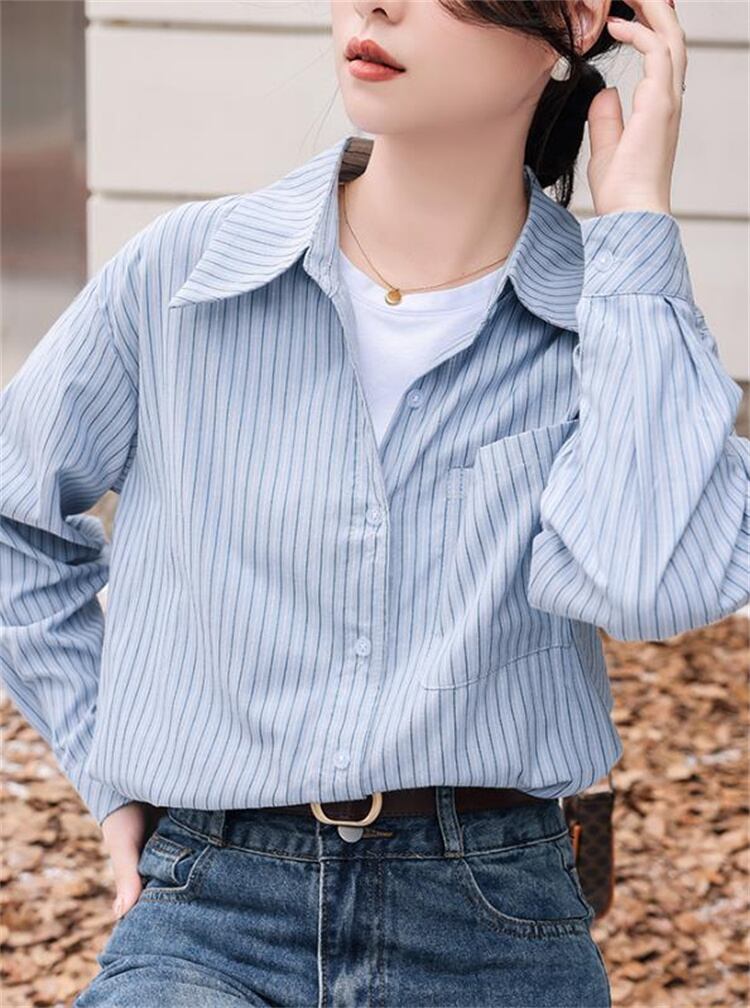 ストライプ 長袖 快適 シャツ 秋 おしゃれな トップス
