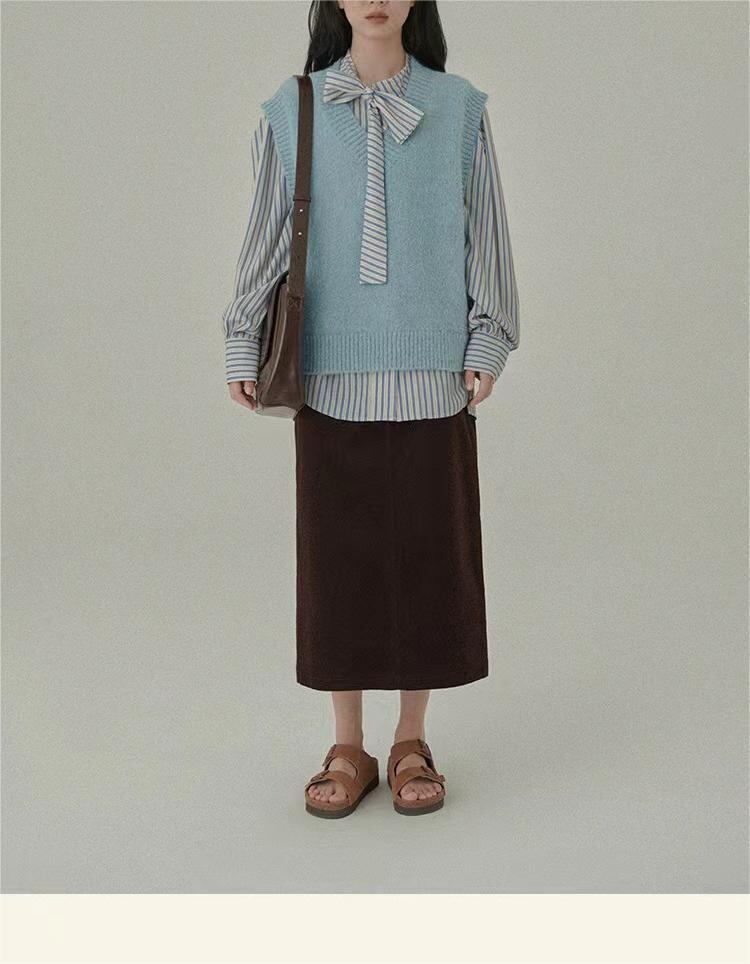 通勤 ゆったり 蝶ネクタイ 上着 ストライプ シャツ ブラウス 女性