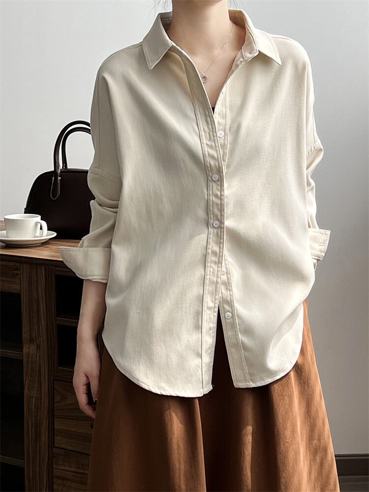 レトロ シャツ ゆったり 長袖 トップス 毛磨き 上着 カジュアル