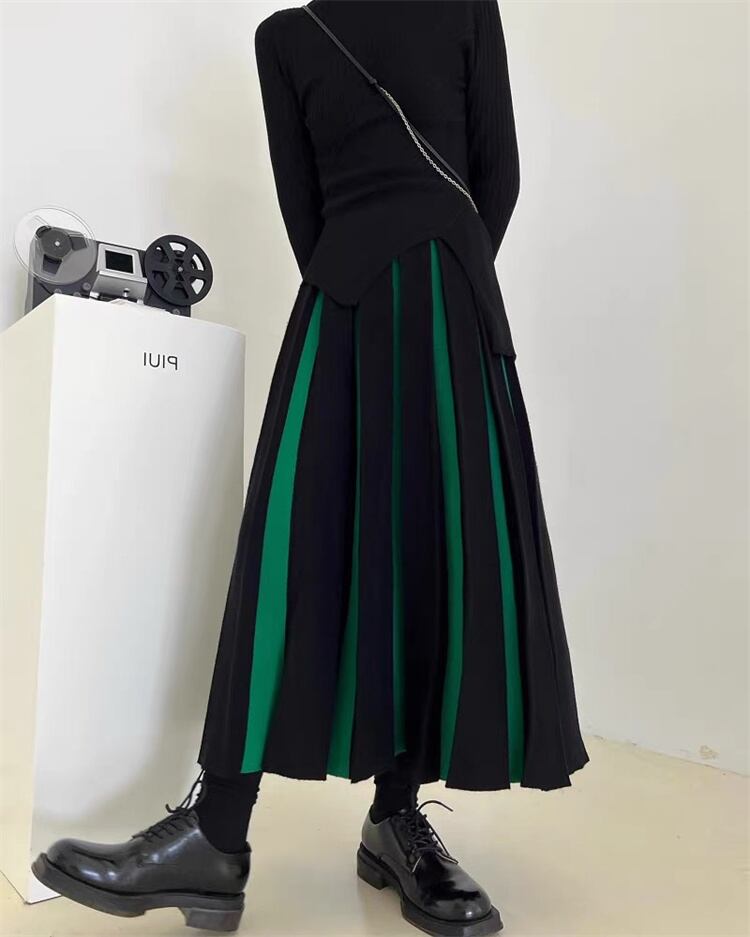 秋冬 プリーツスカート レトロ A字 傘スカート スカート ロング