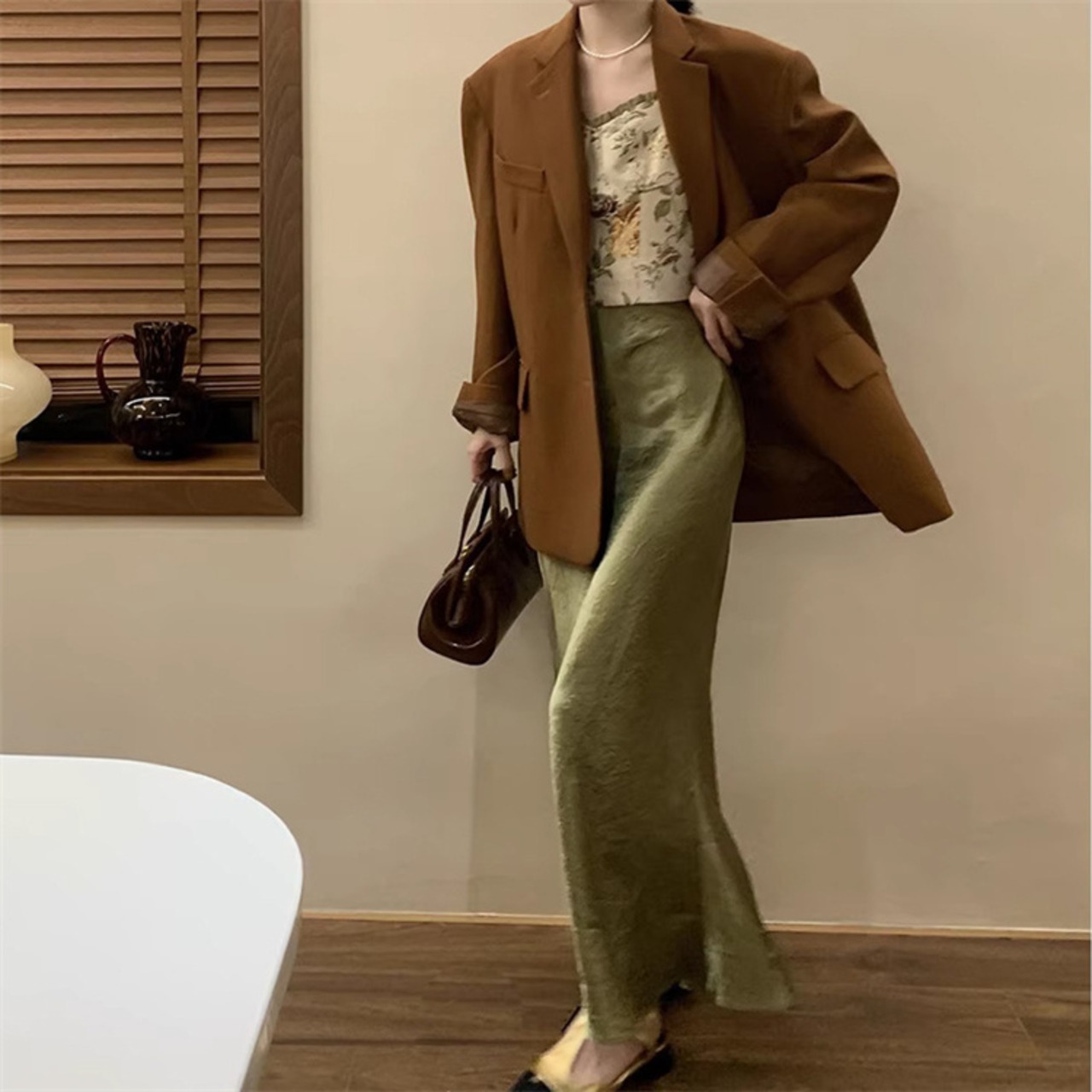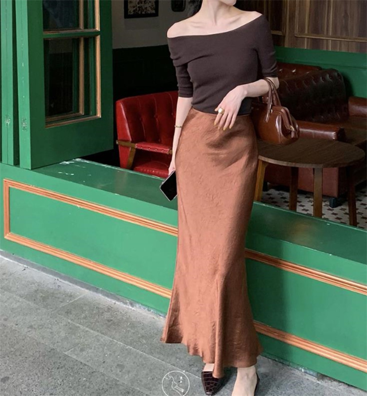 サテンハーフスカート ロング Aライン 細身 タイトスカート ハイウエスト 洋服 レディースファッション