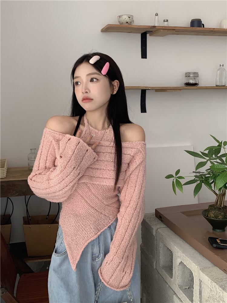 上着 オフショルダー ニットトップス 大人気 セットアップ 秋冬 ギャザリング