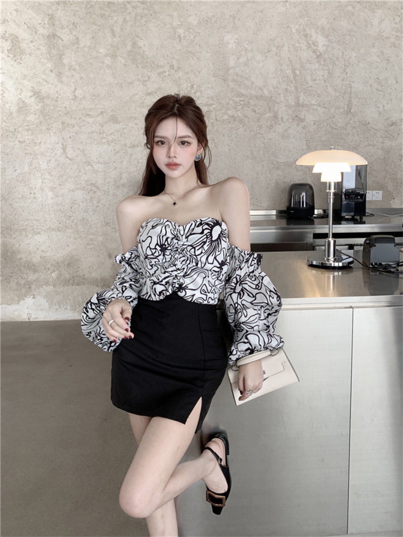 ギャル トップス 上着 抽象 チューブトップ 花柄 シャツ 洋服 レディースファッション