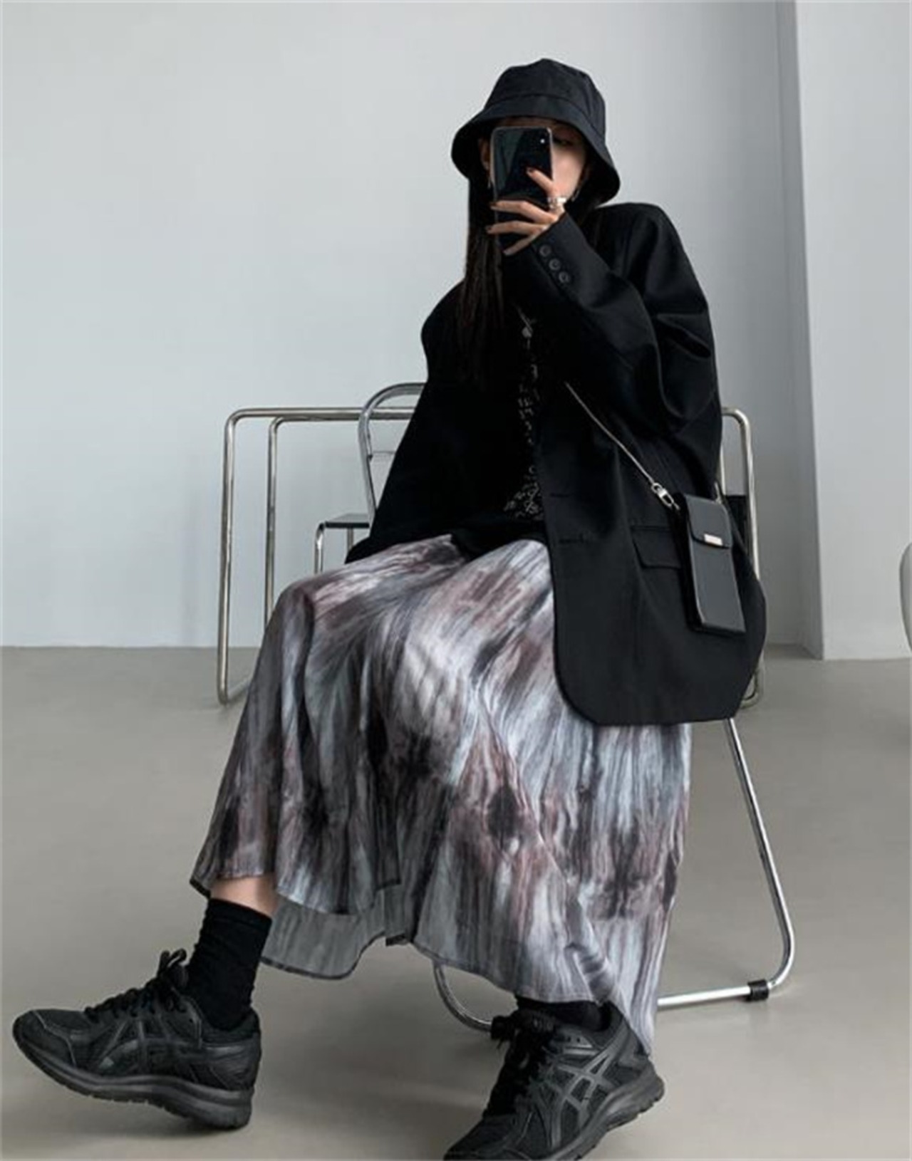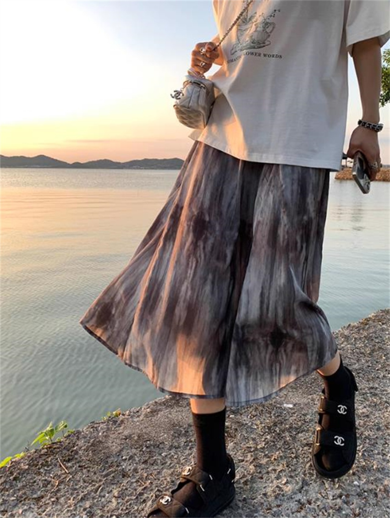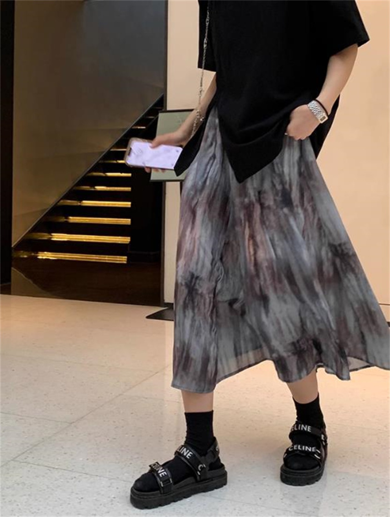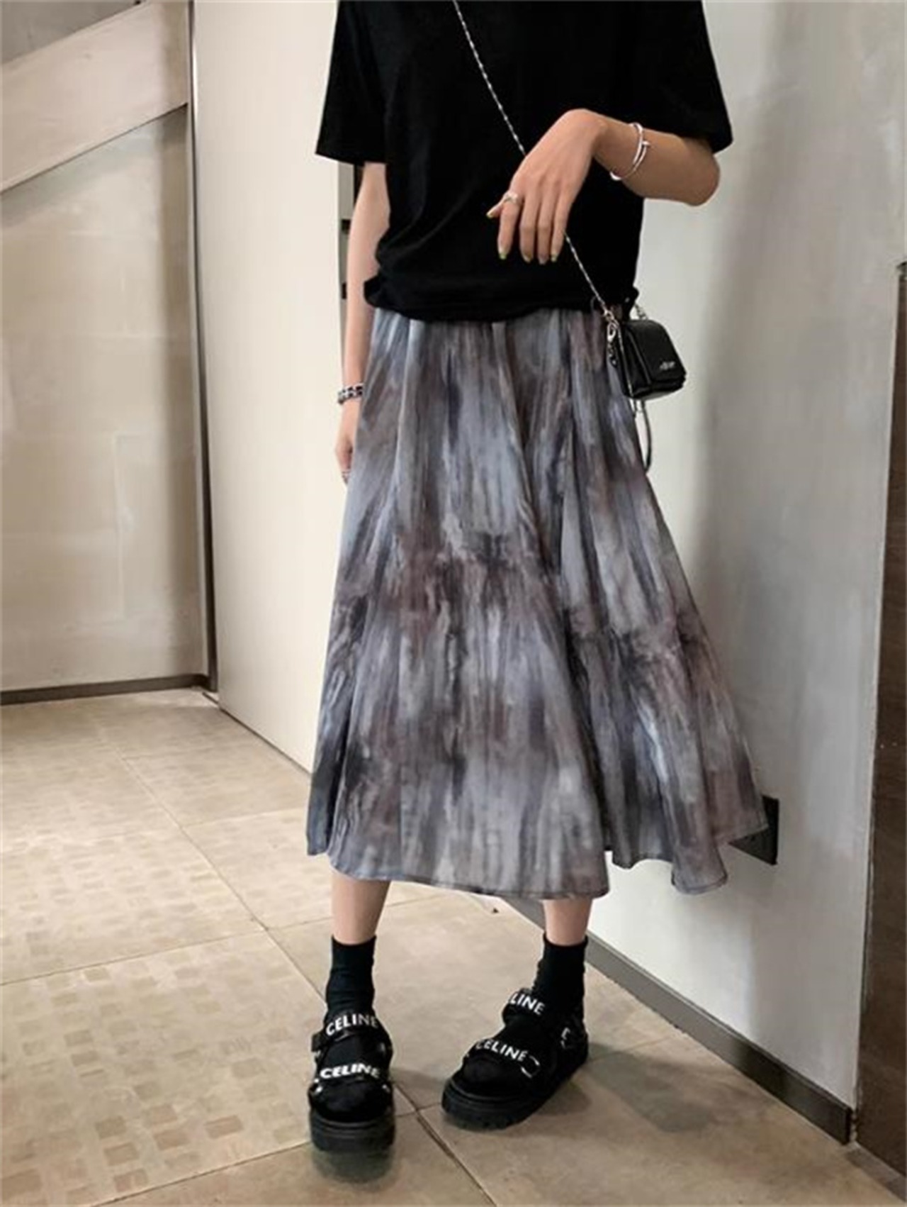 傘スカート スリム 油絵 グラデーション デザインセンス ロングスカート
