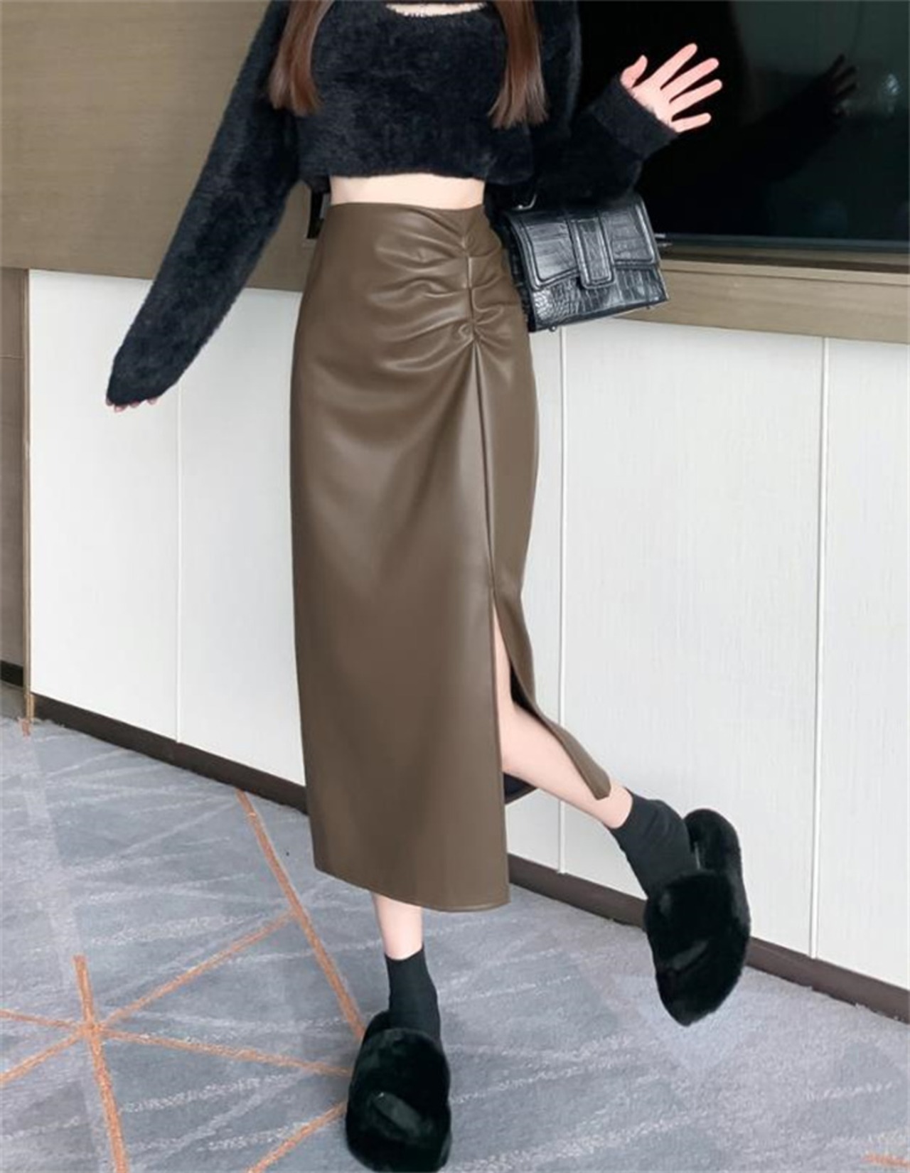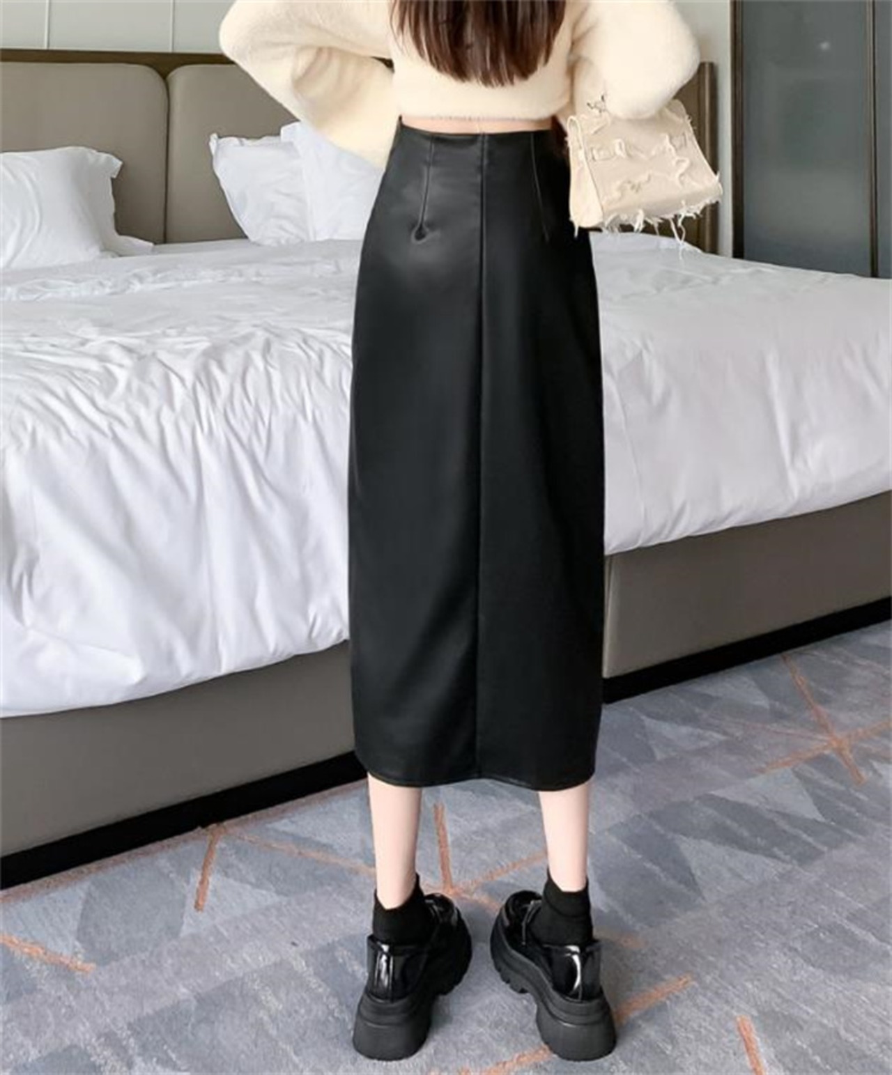 スプリット A字スカート 女性 タイトスカート スリム PU皮スカート