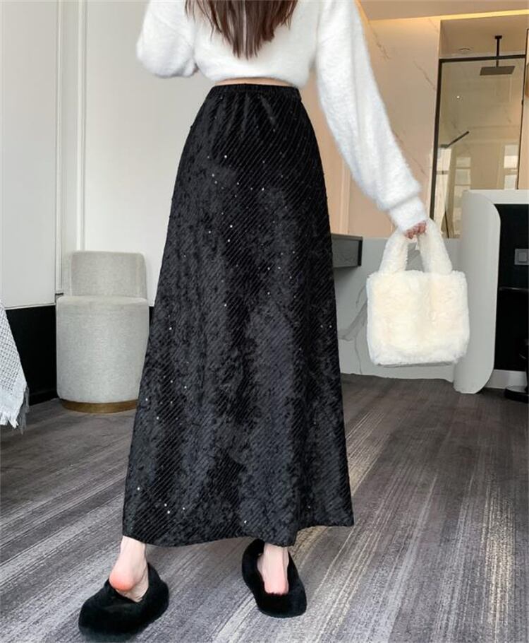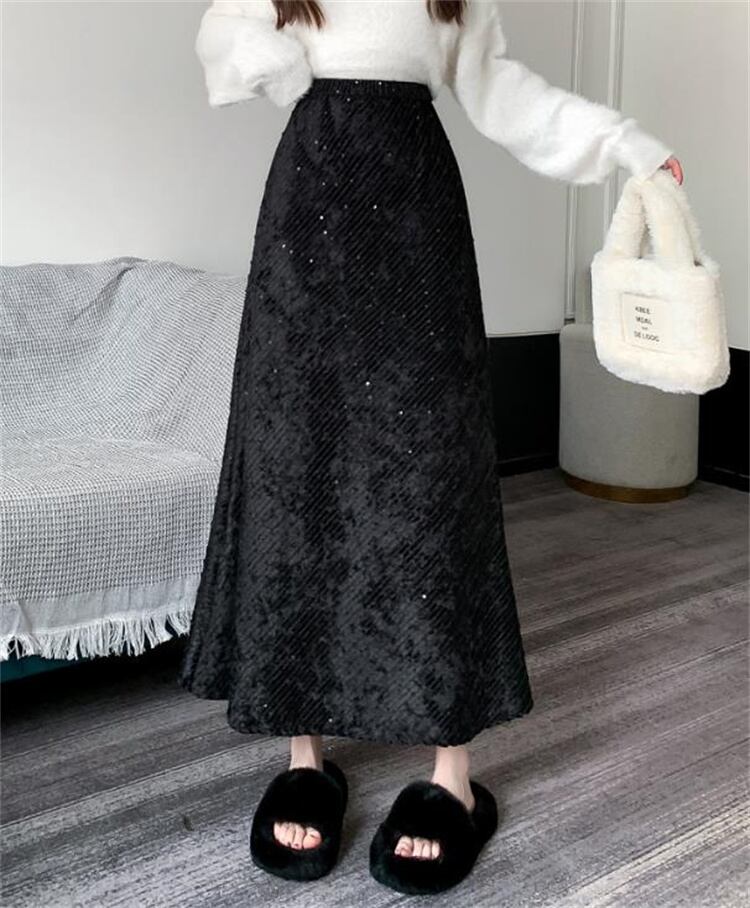 スカート 春 伸縮性のあるウエスト ハイウエスト 通勤 スパンコール